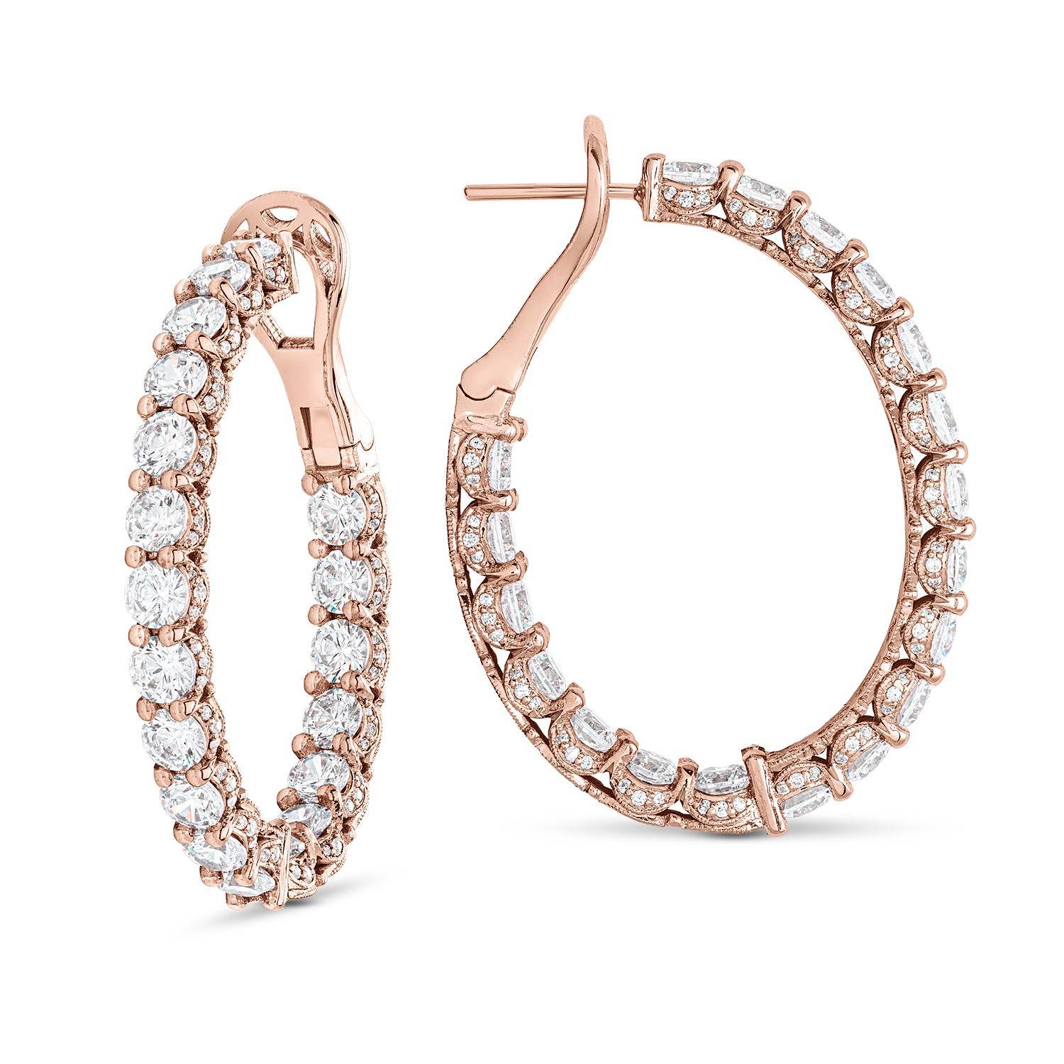 These oval hoop earrings are patterned with round stones, and the crescent detailing on the side profile is enhanced with round-brilliant diamonds, creating an all-angle sparkle. Set into 18kt white gold hand-decorated with delicate milgrain.