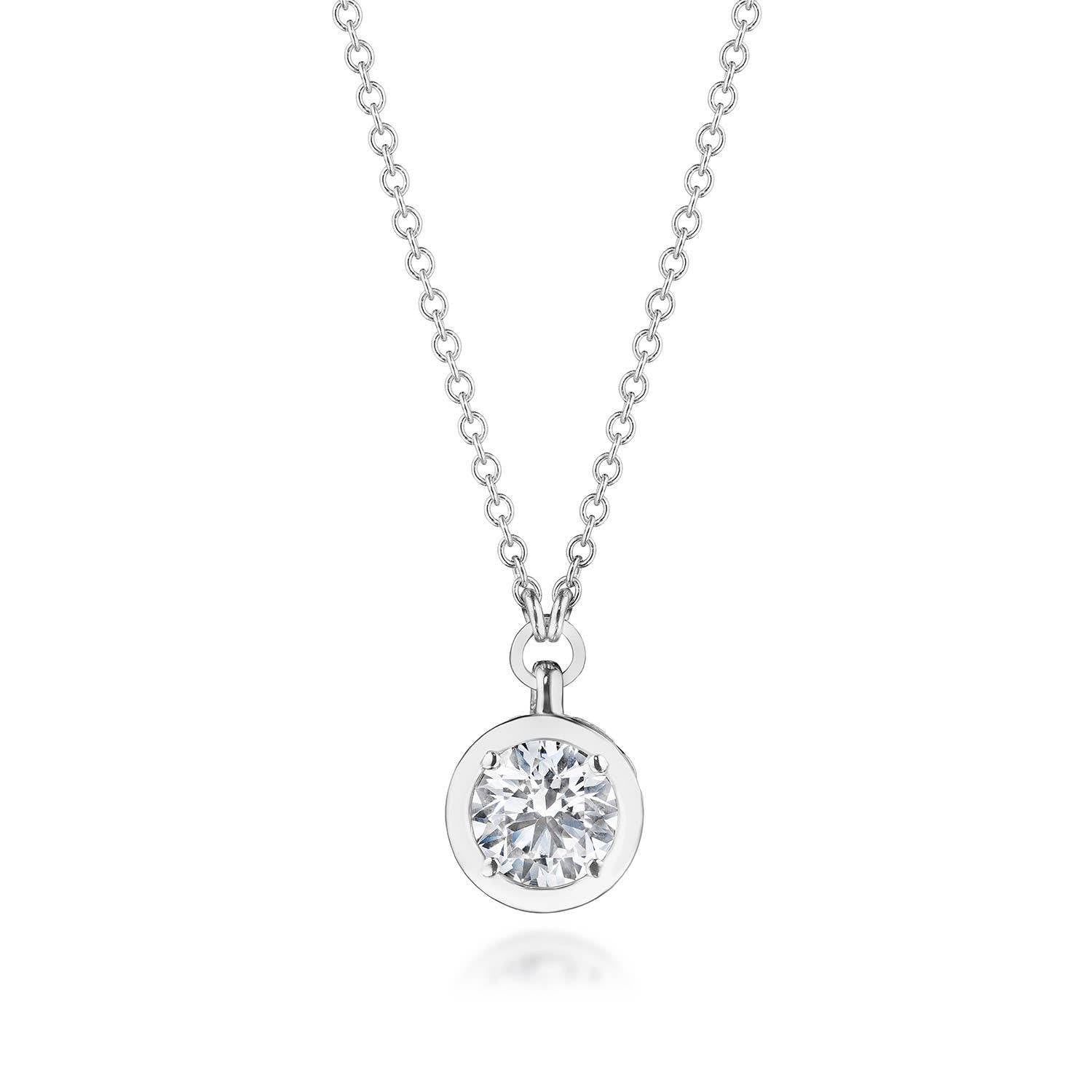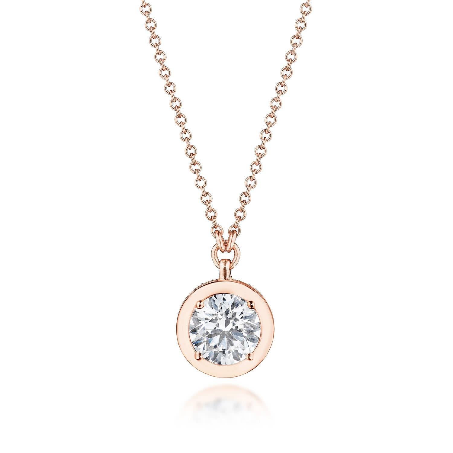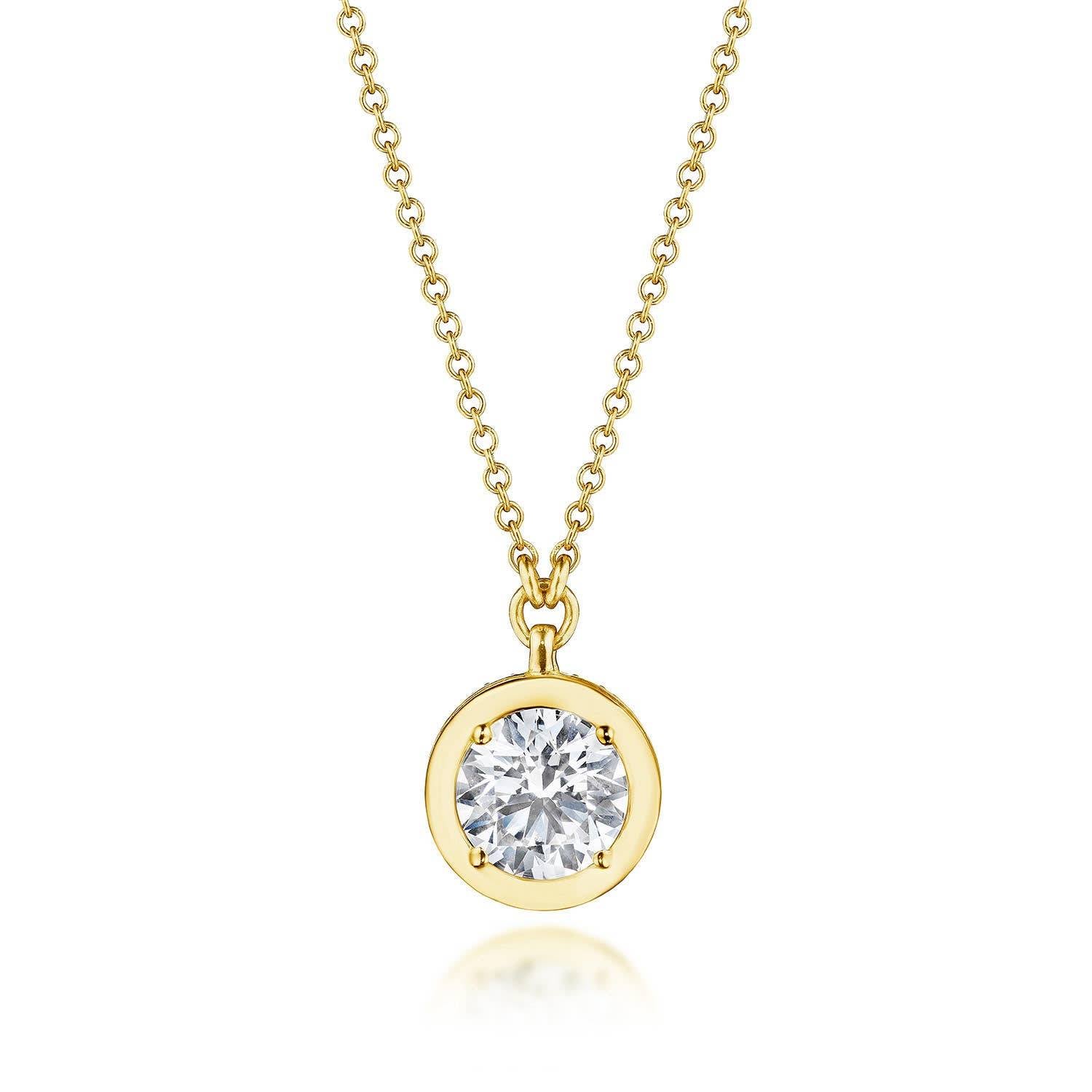 A bezel pendant of captivating depths. The high polish frame enthralls the mined diamond center. On the reverse, TACORI Crescent detailing and pinpoint mined diamonds add dimension.