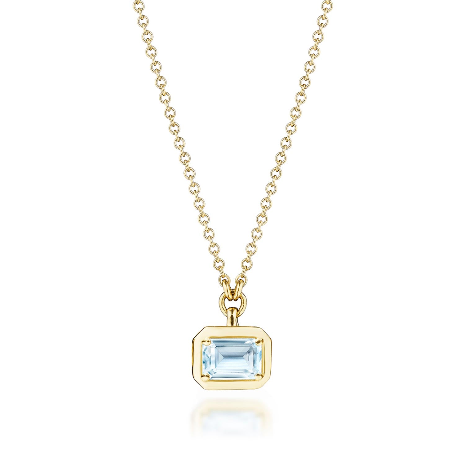A bezel pendant of captivating depths. The high polish frame enthralls the Sky Blue Topaz center. On the reverse, TACORI Crescent detailing and pinpoint mined diamonds add dimension.