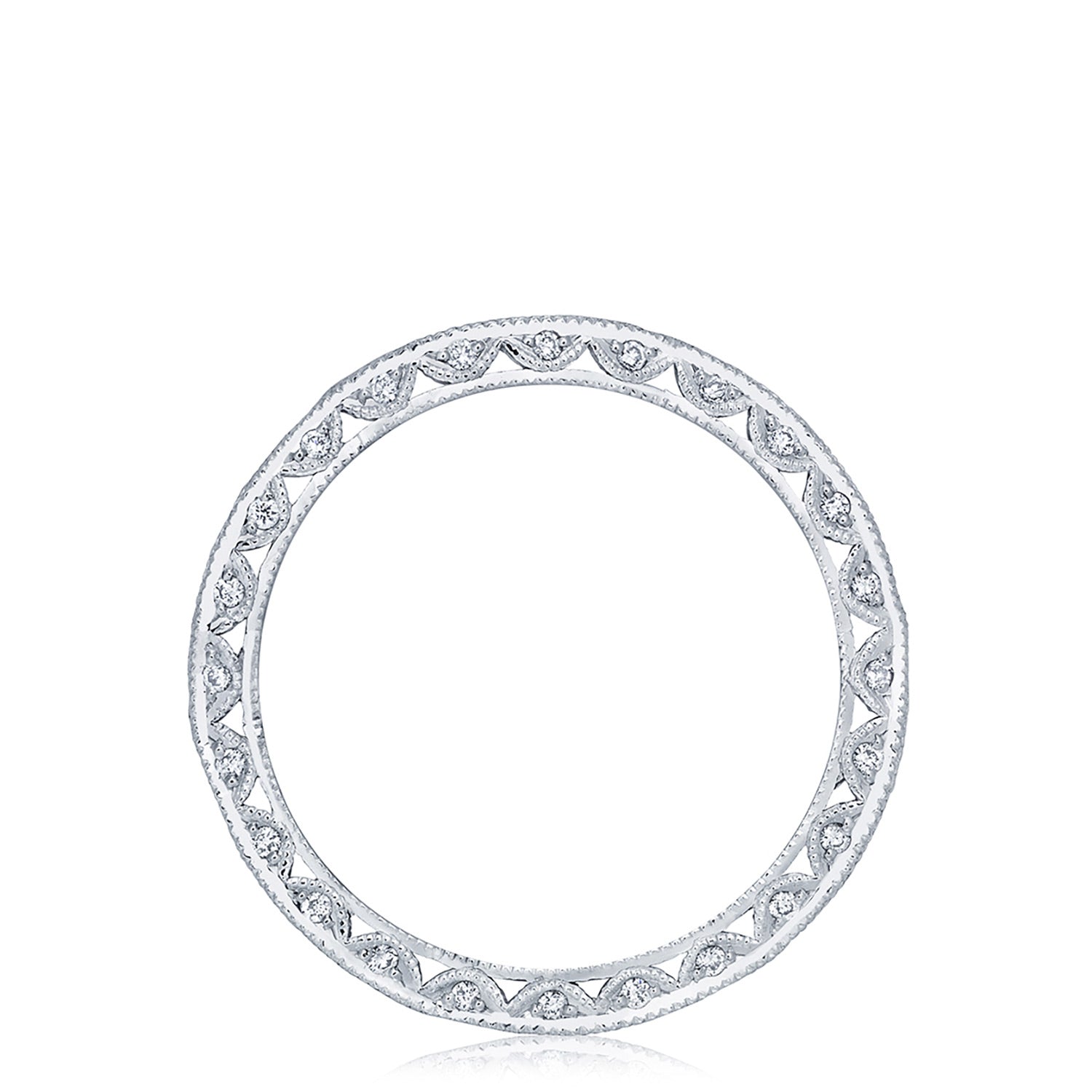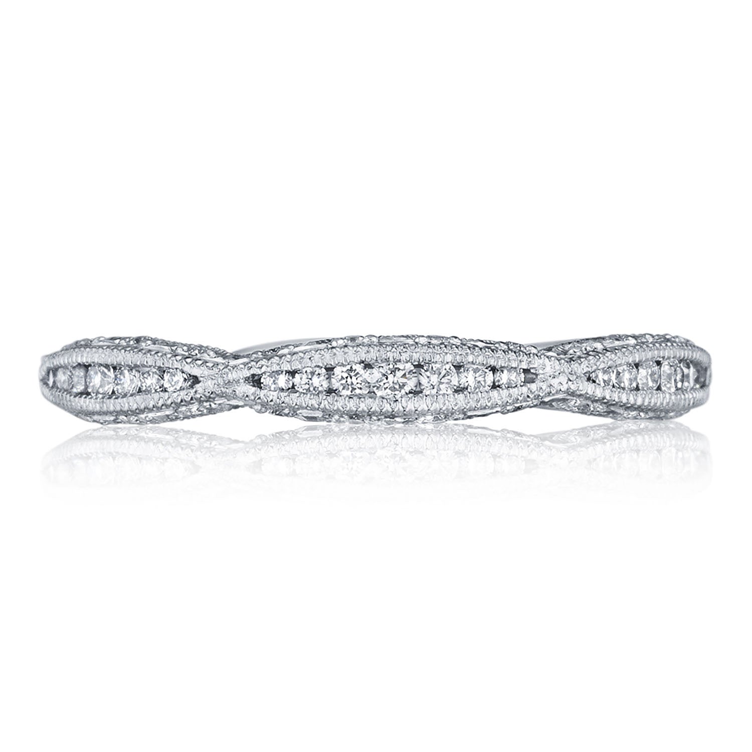 A dainty, ribbon-like foundation enhances the intricate diamond and milgrain detailing. A diamond-studded Signature Crescent adds a stamp of authenticity to the band.