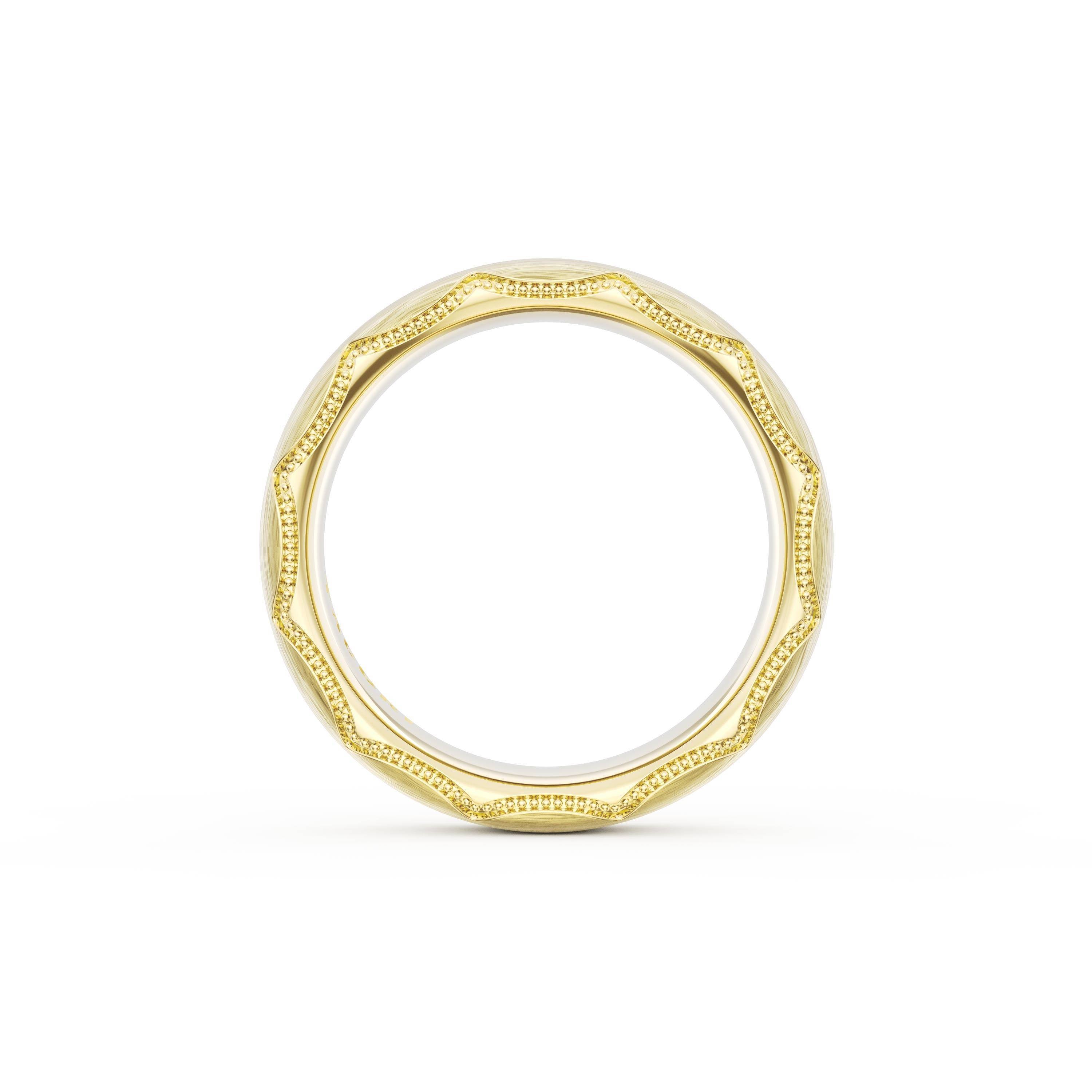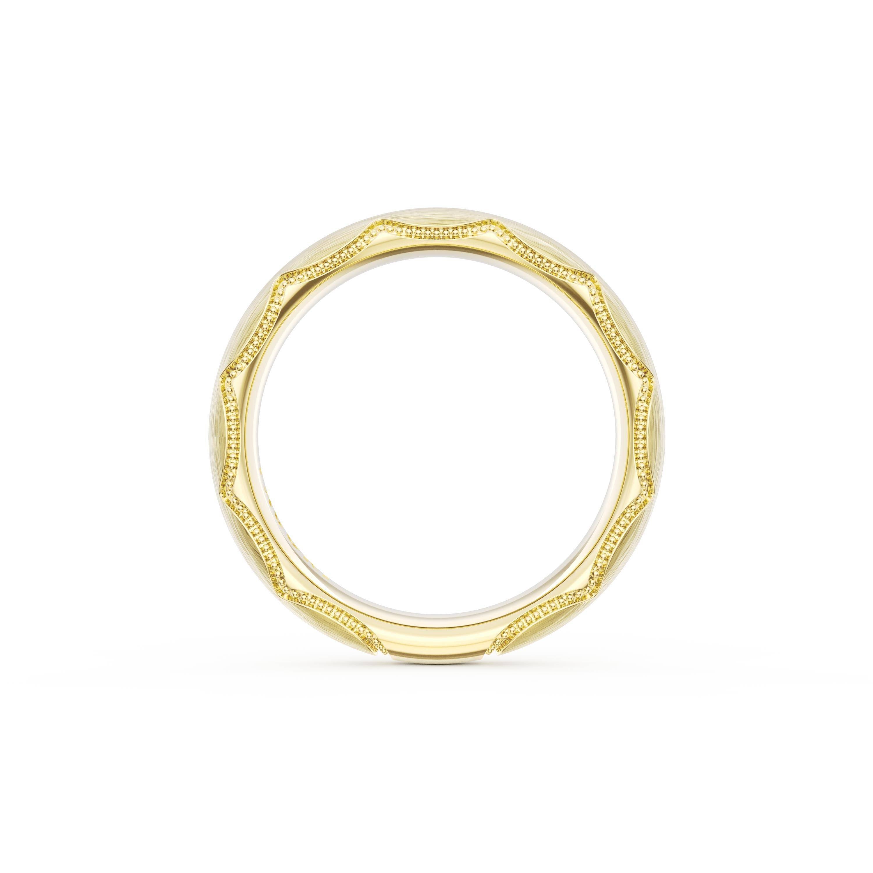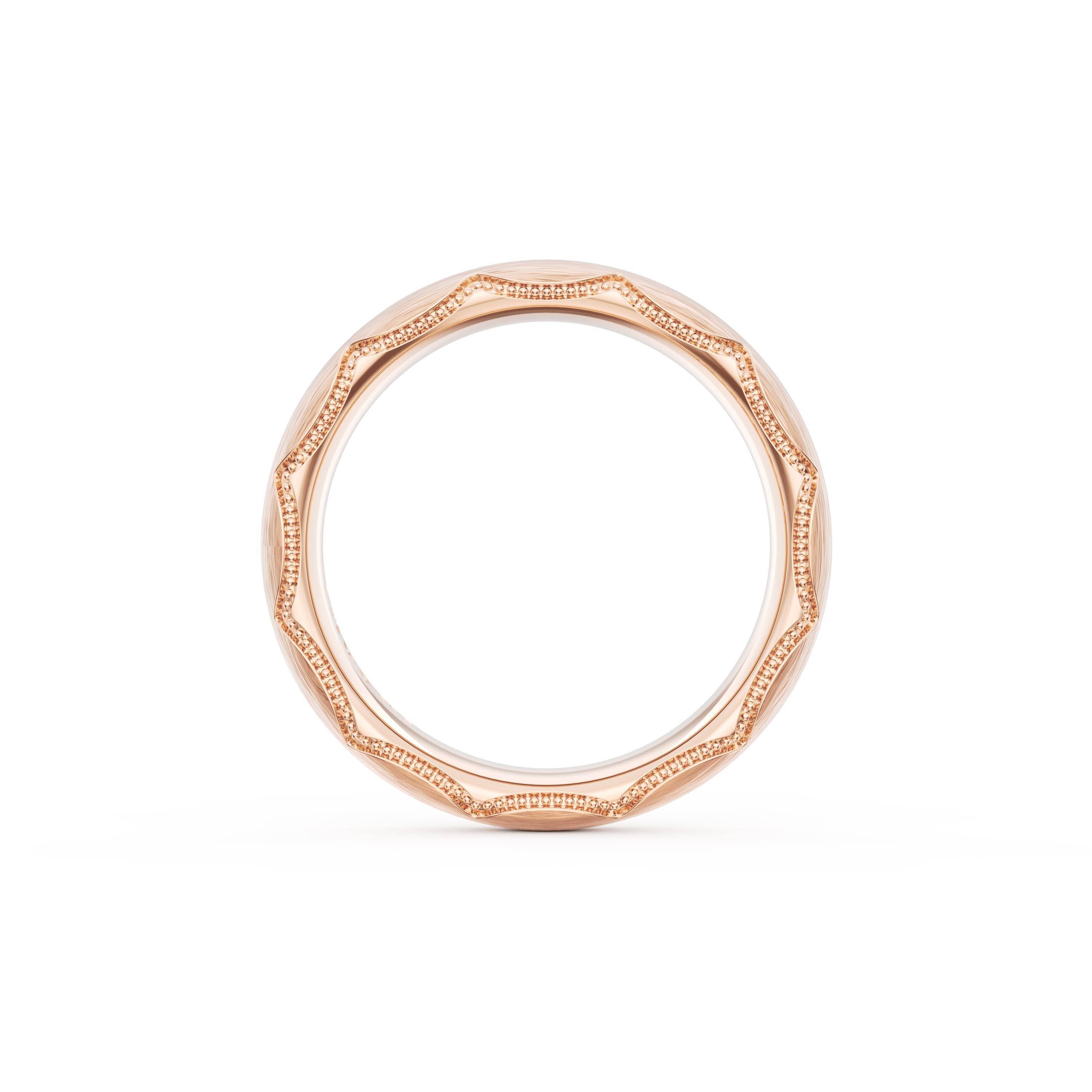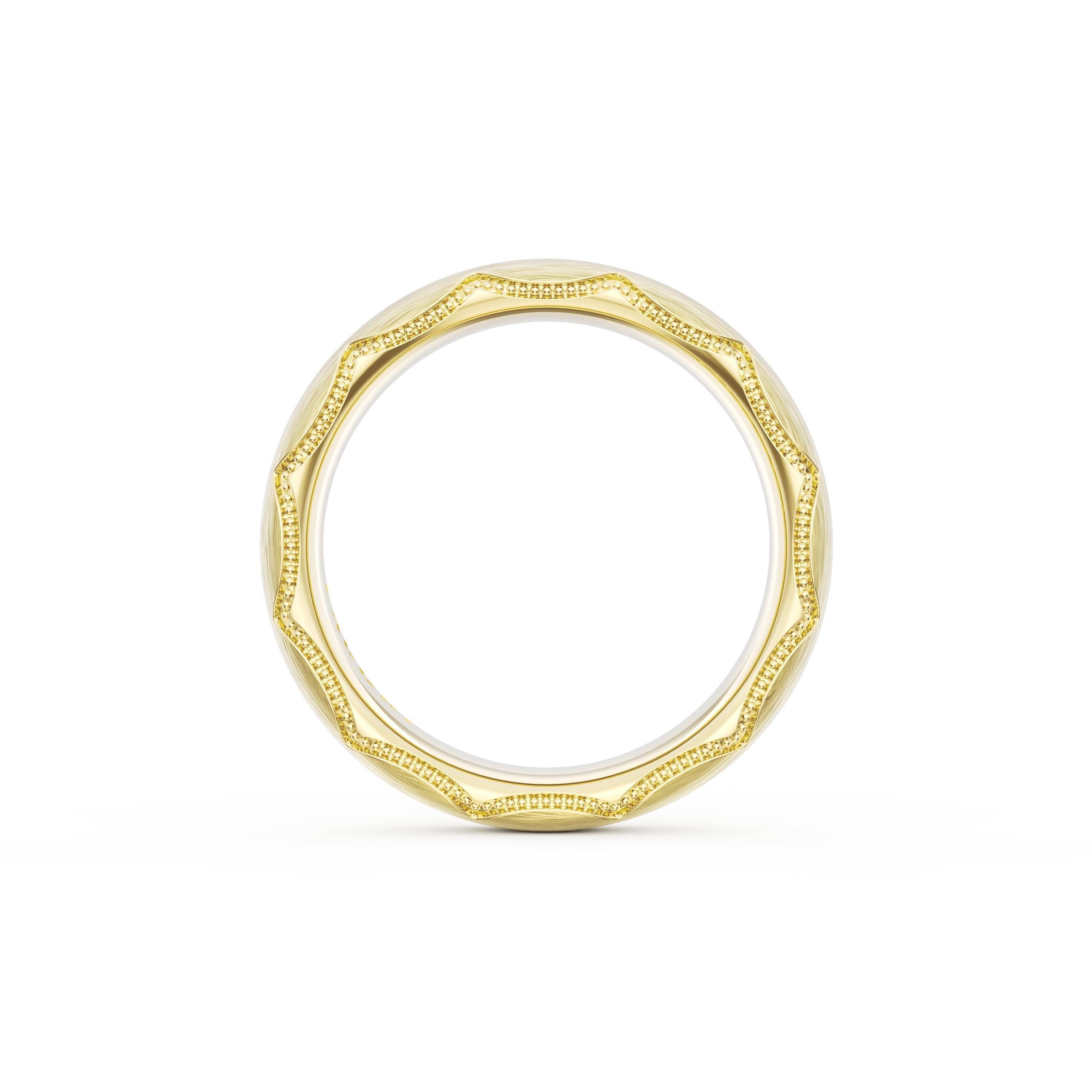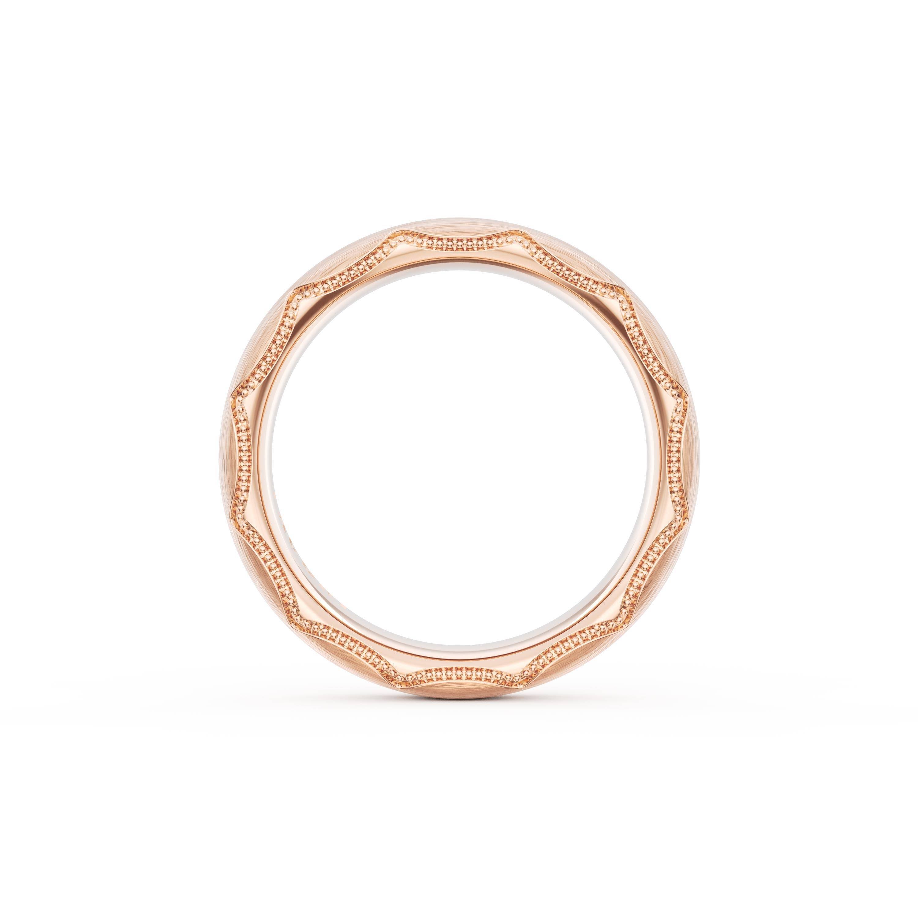 This bold and modern cigar-style band with clean lines gets a touch of texture from milgrain Crescent detailing on the silhouette.