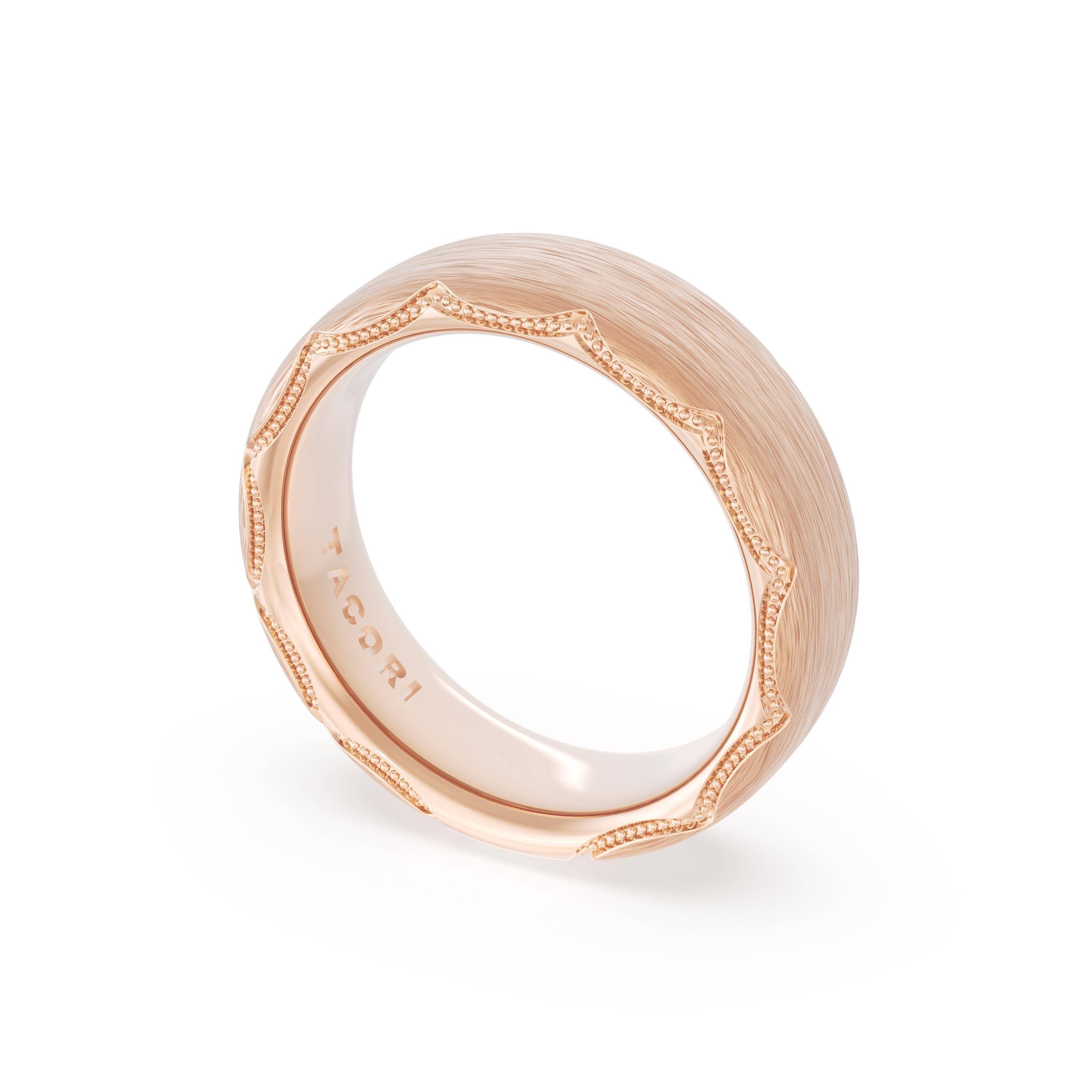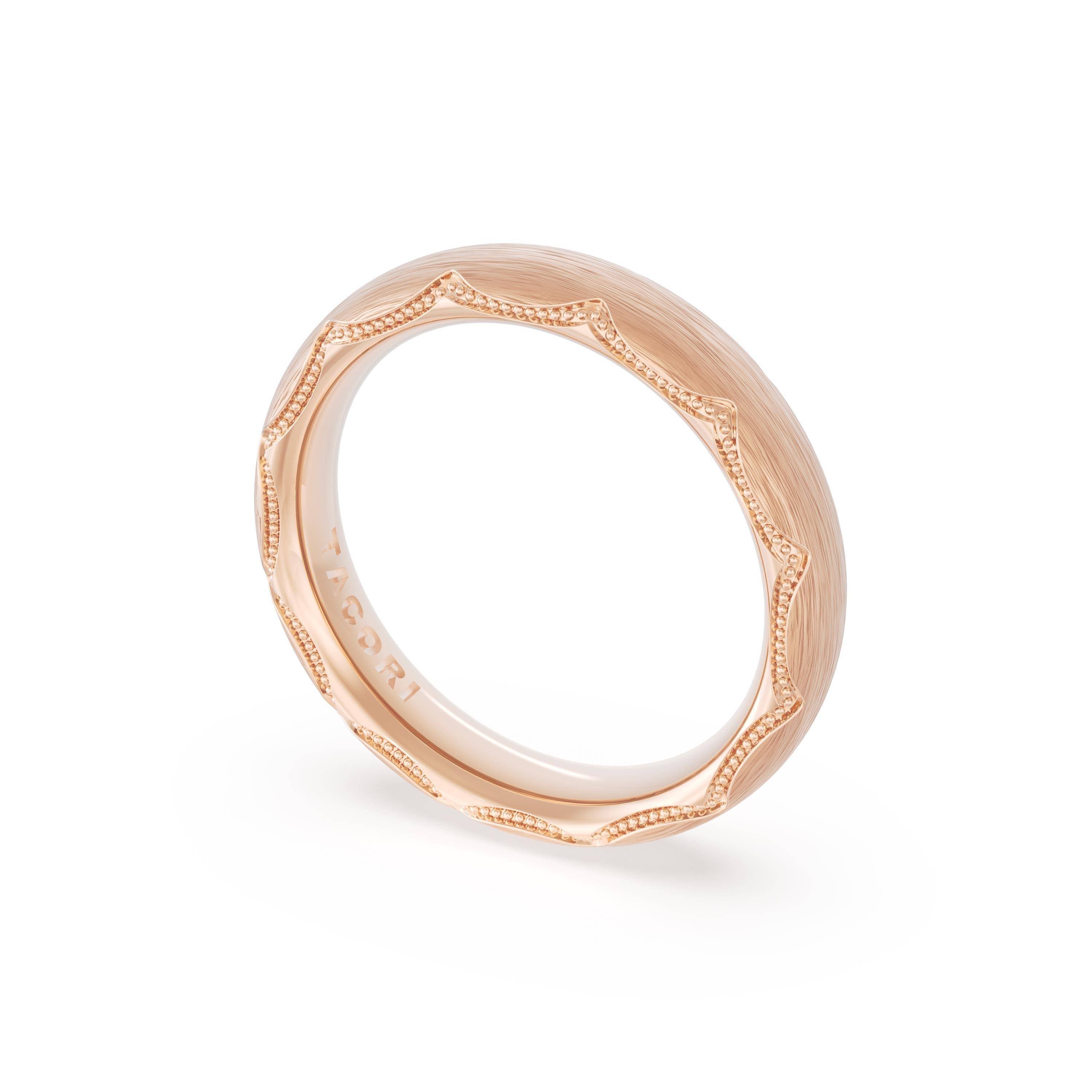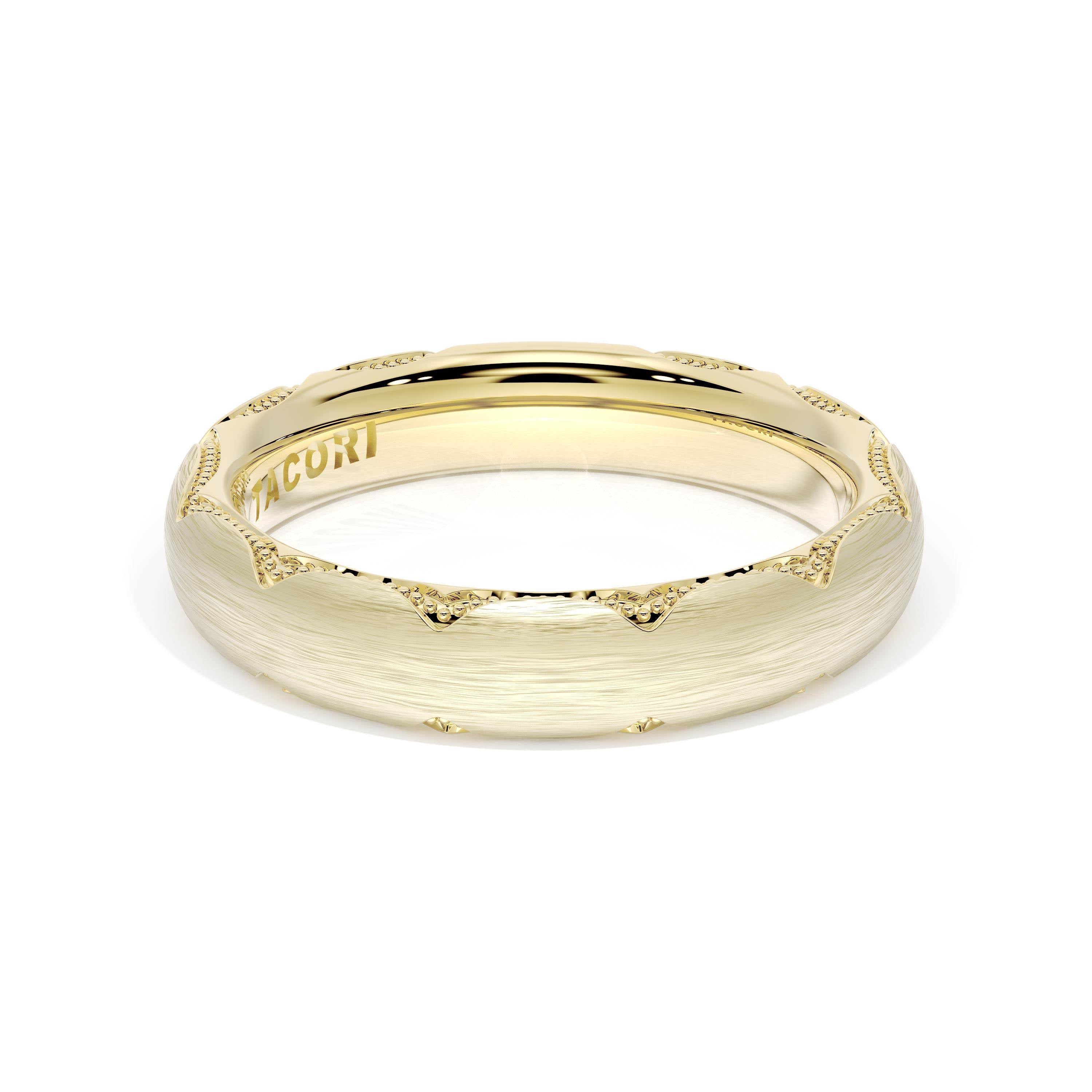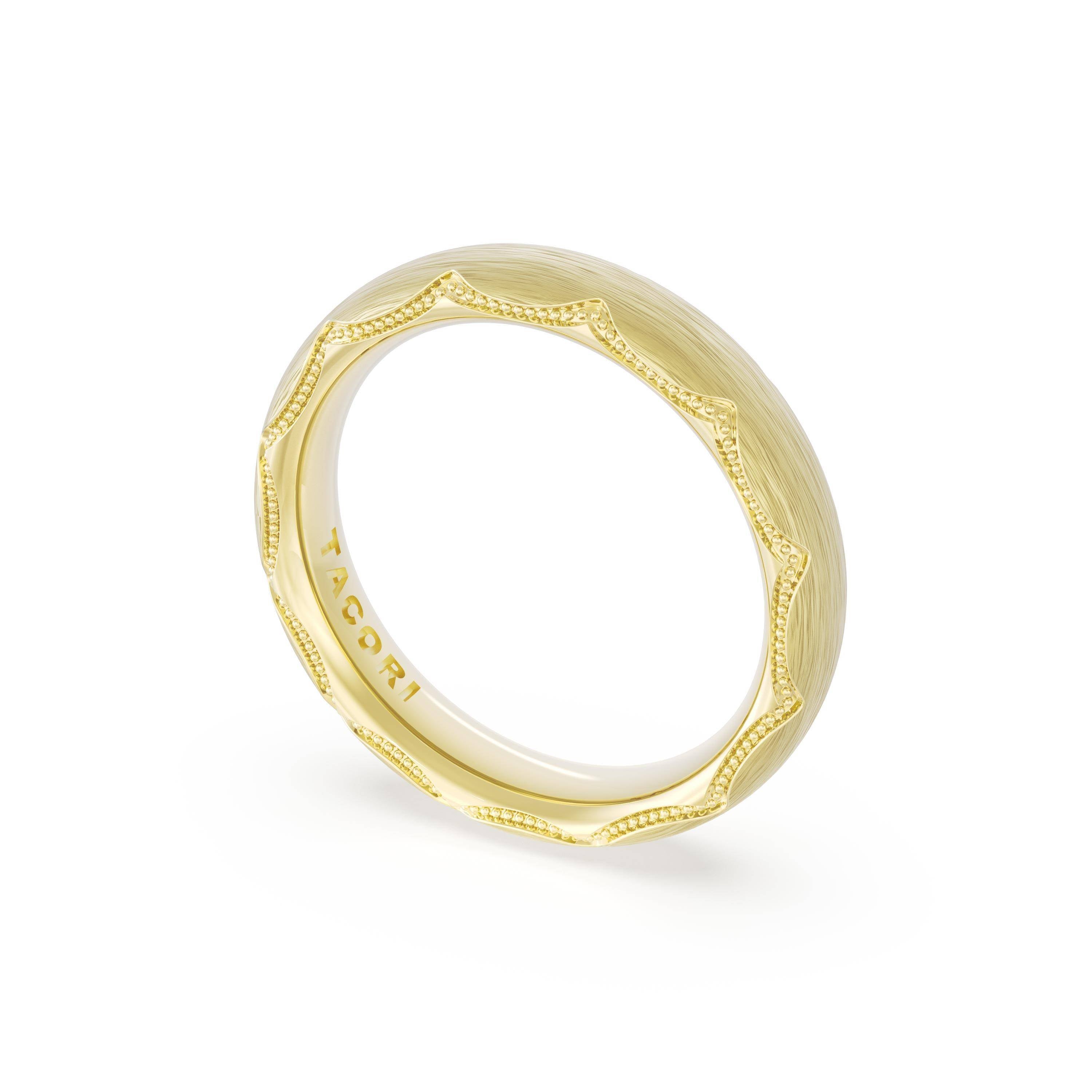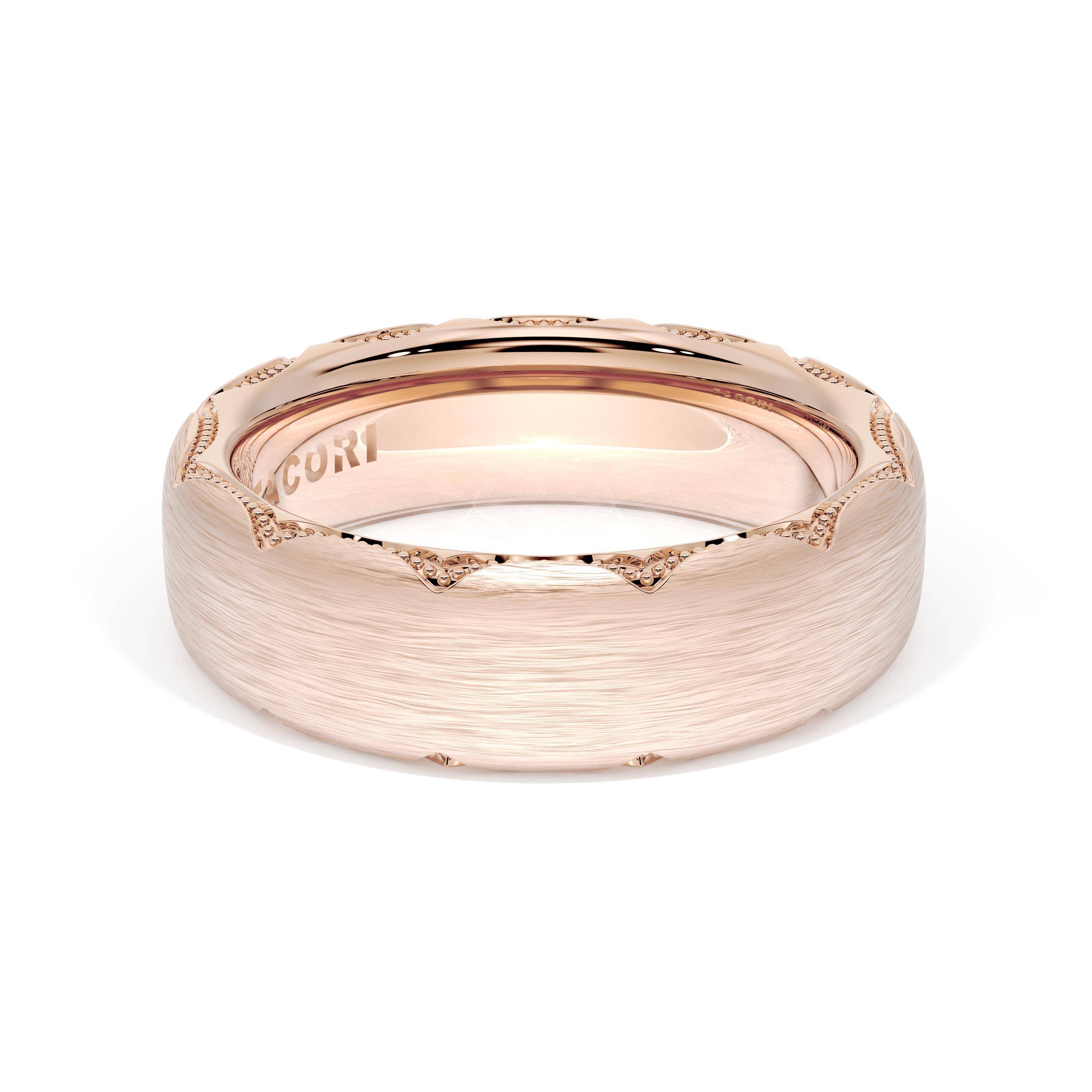 This bold and modern cigar-style band with clean lines gets a touch of texture from milgrain Crescent detailing on the silhouette.