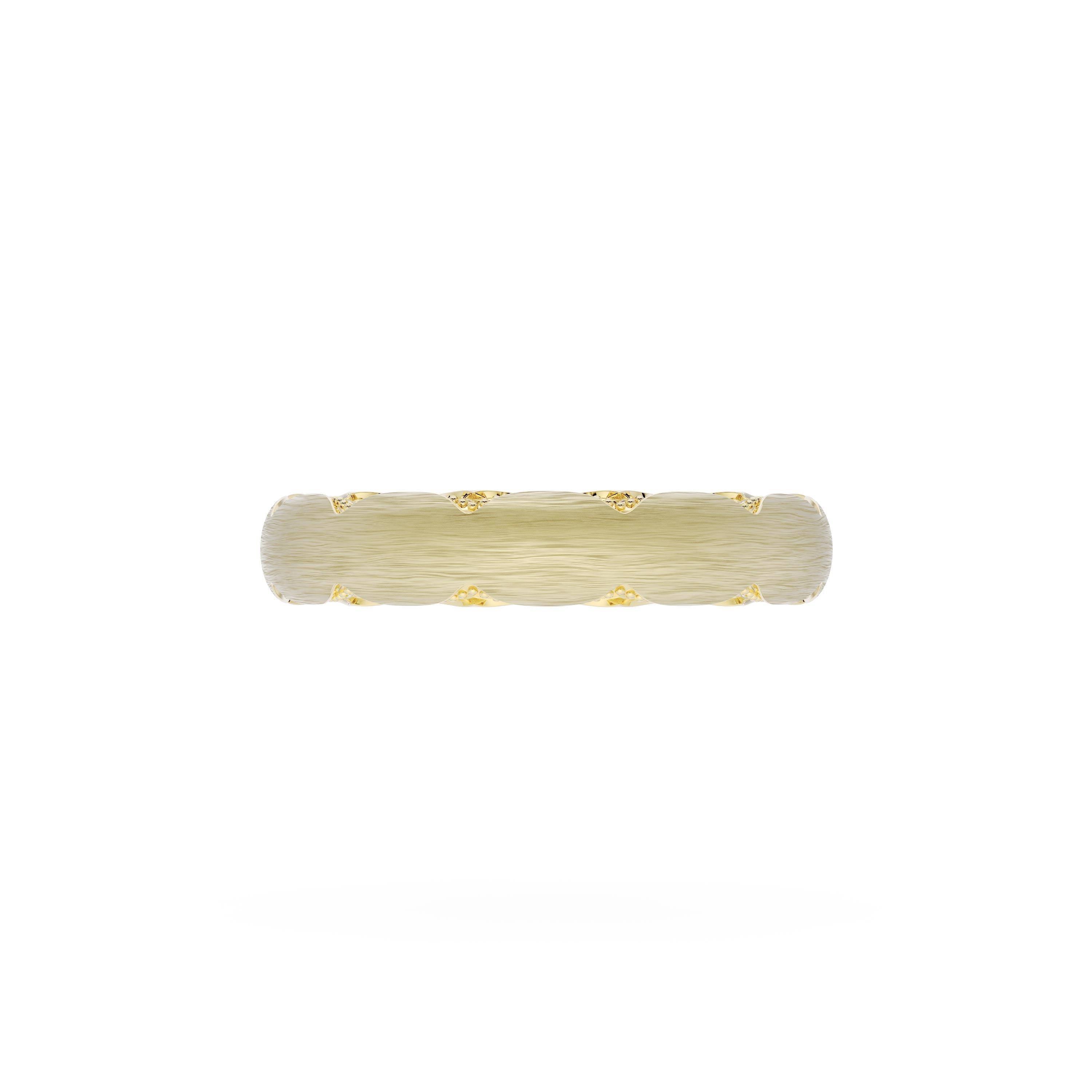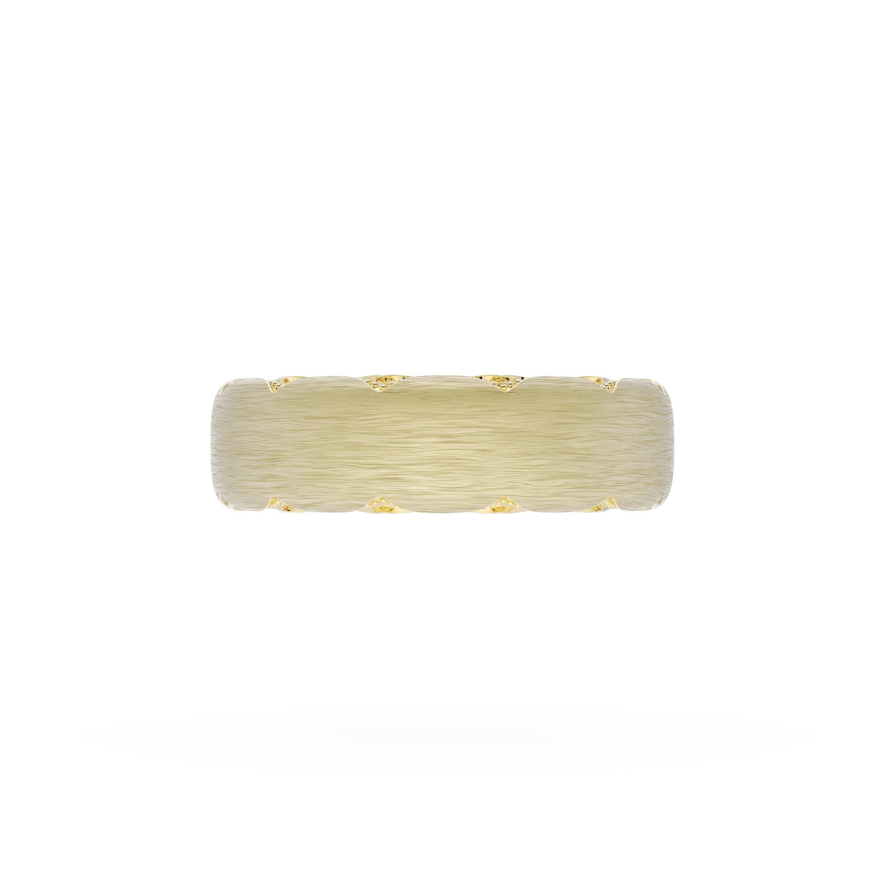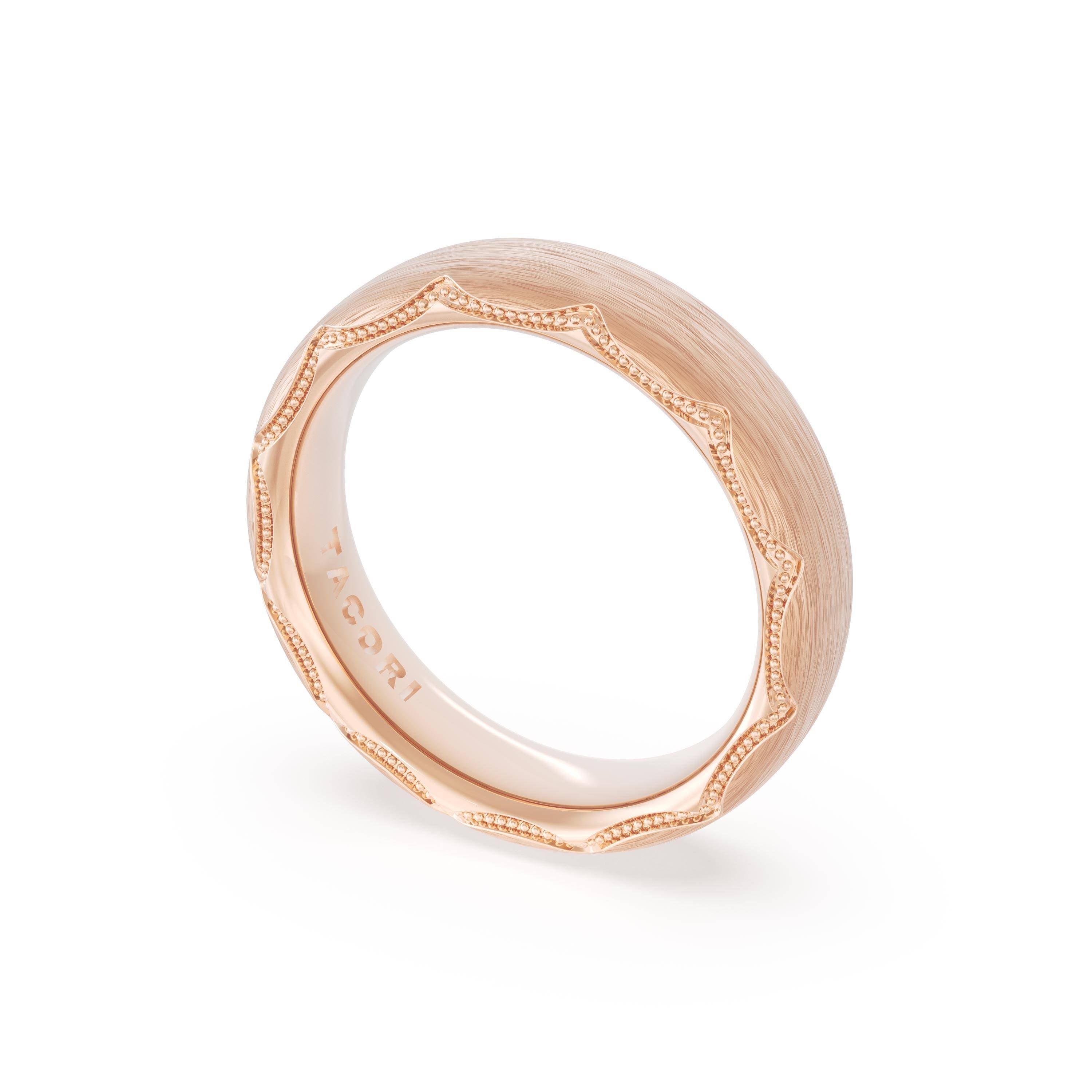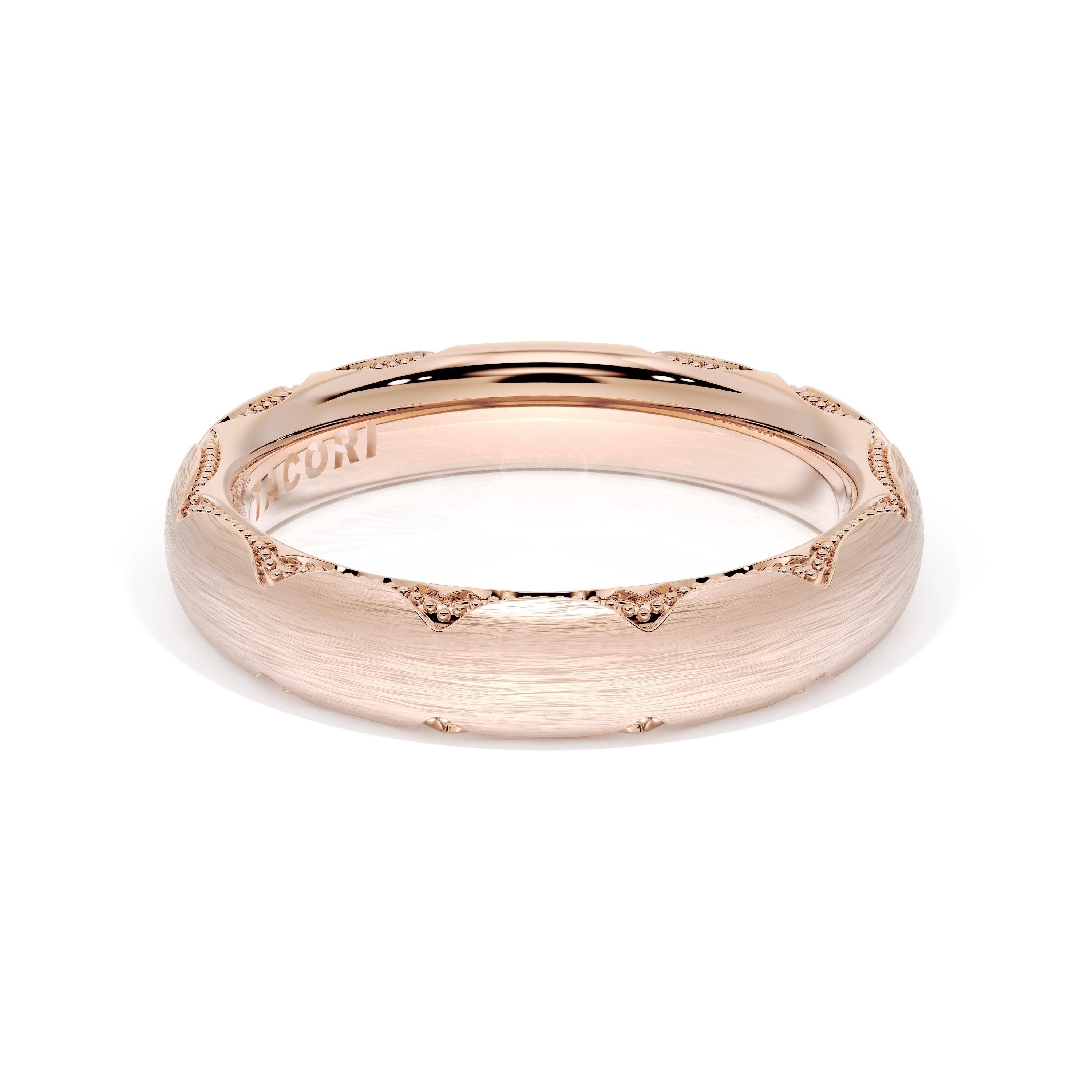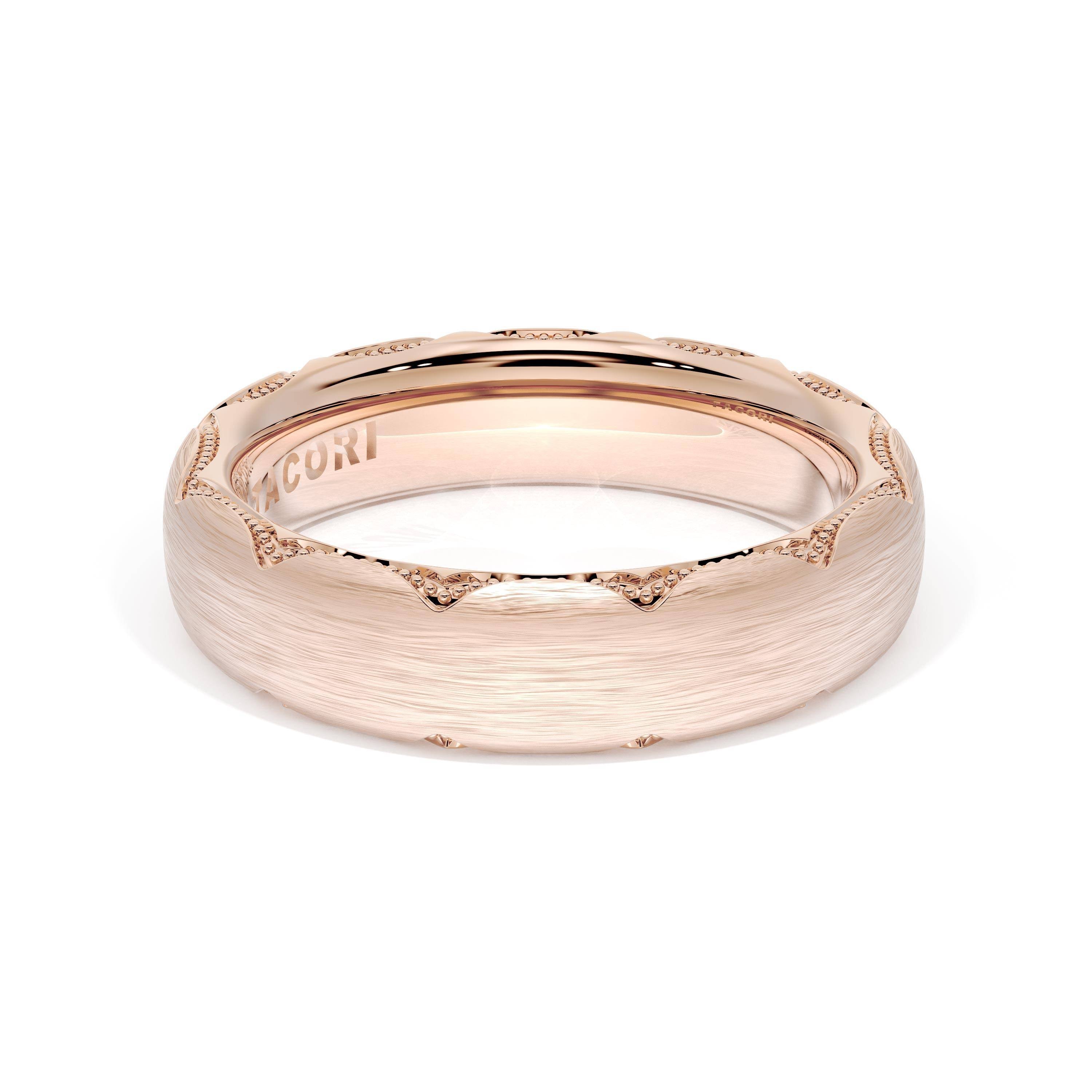 This bold and modern cigar-style band with clean lines gets a touch of texture from milgrain Crescent detailing on the silhouette.