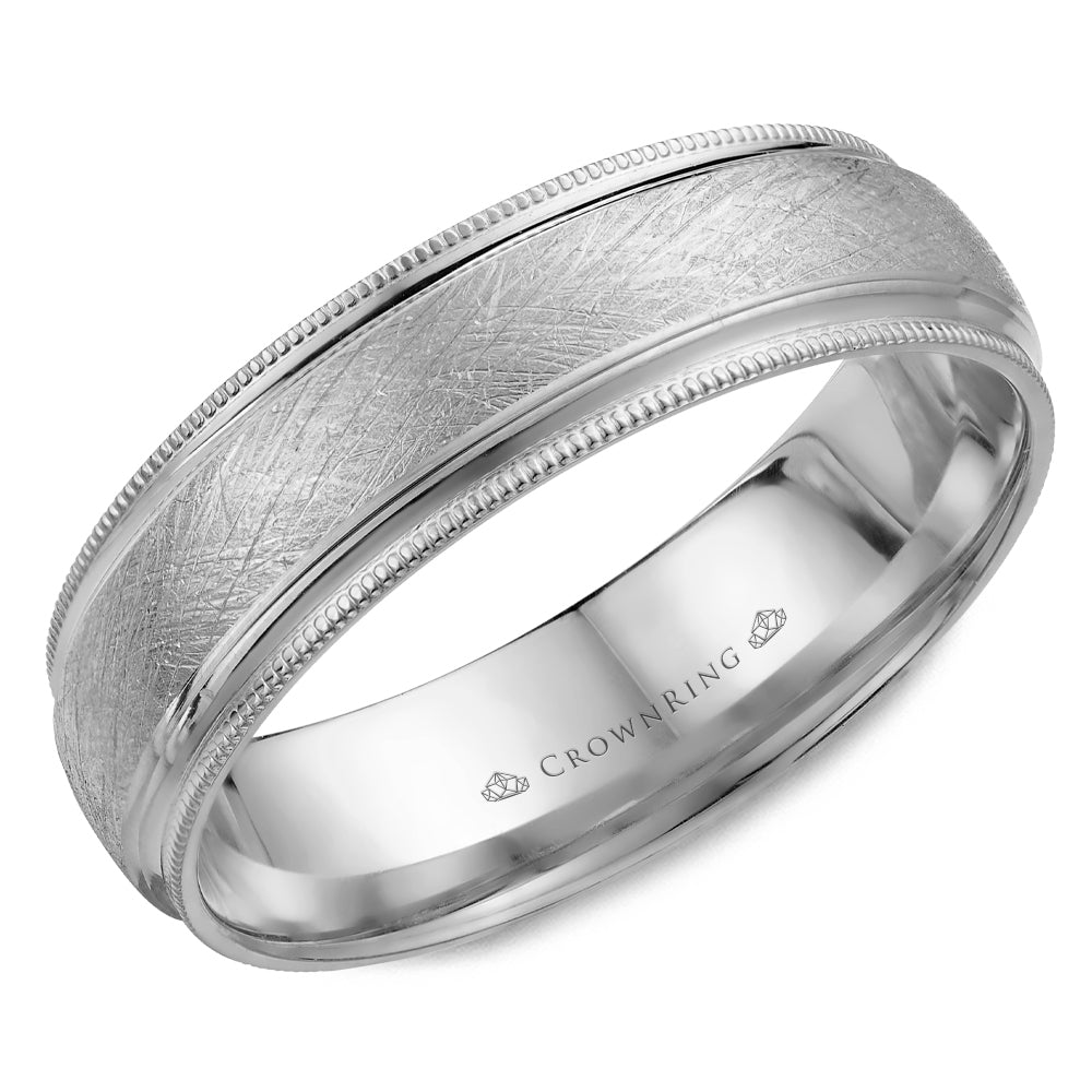 A 6.00mm Crownring Wedding Band in White Gold