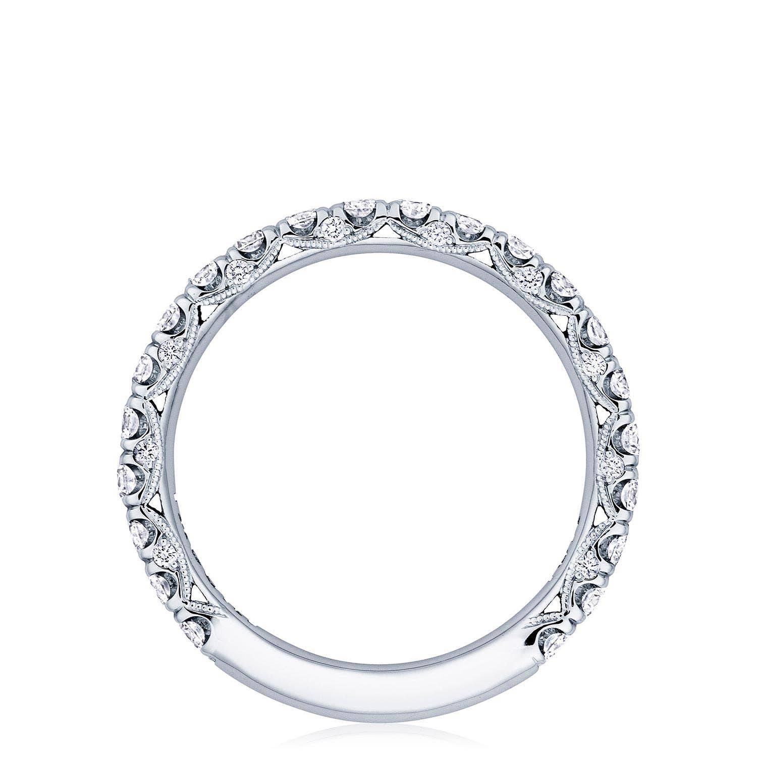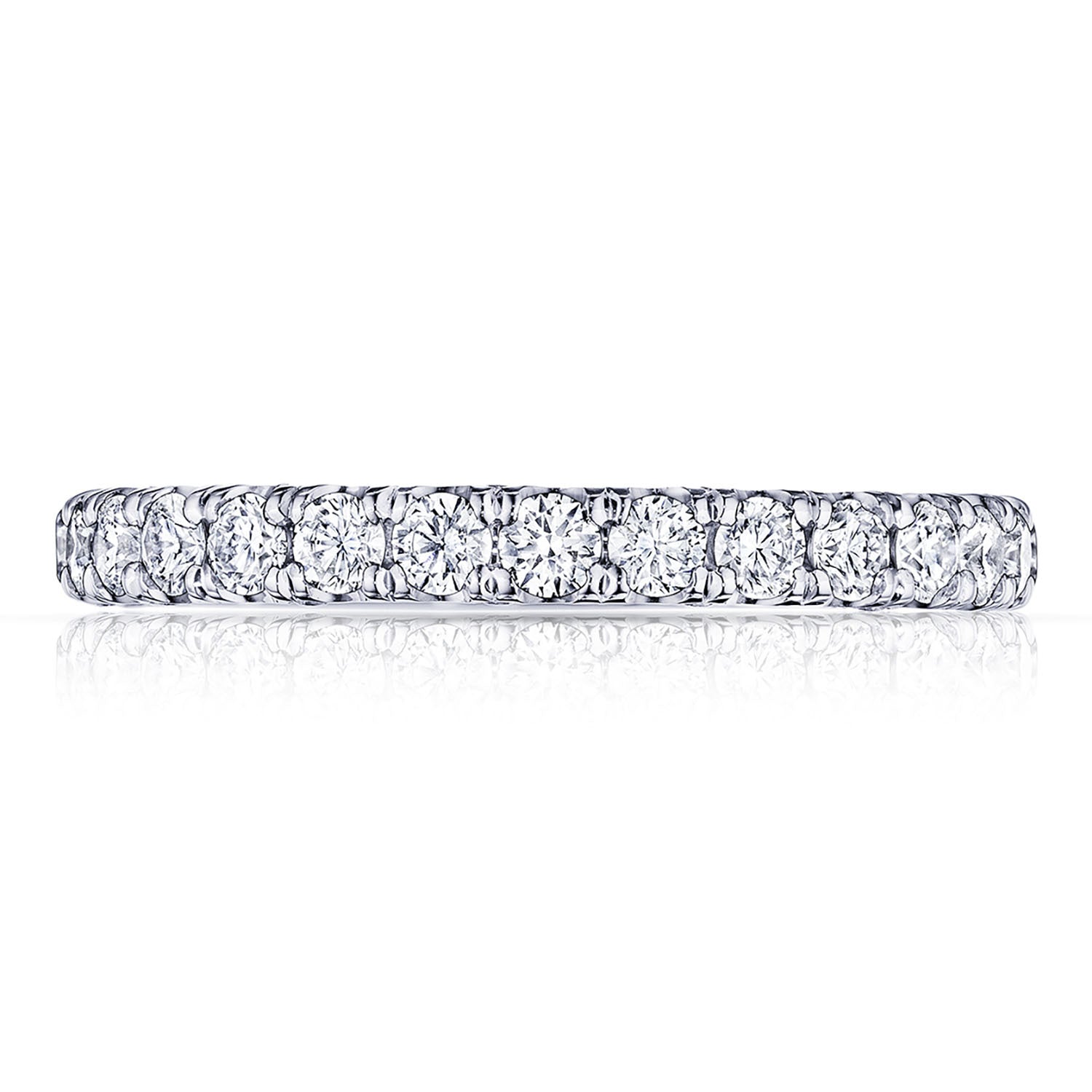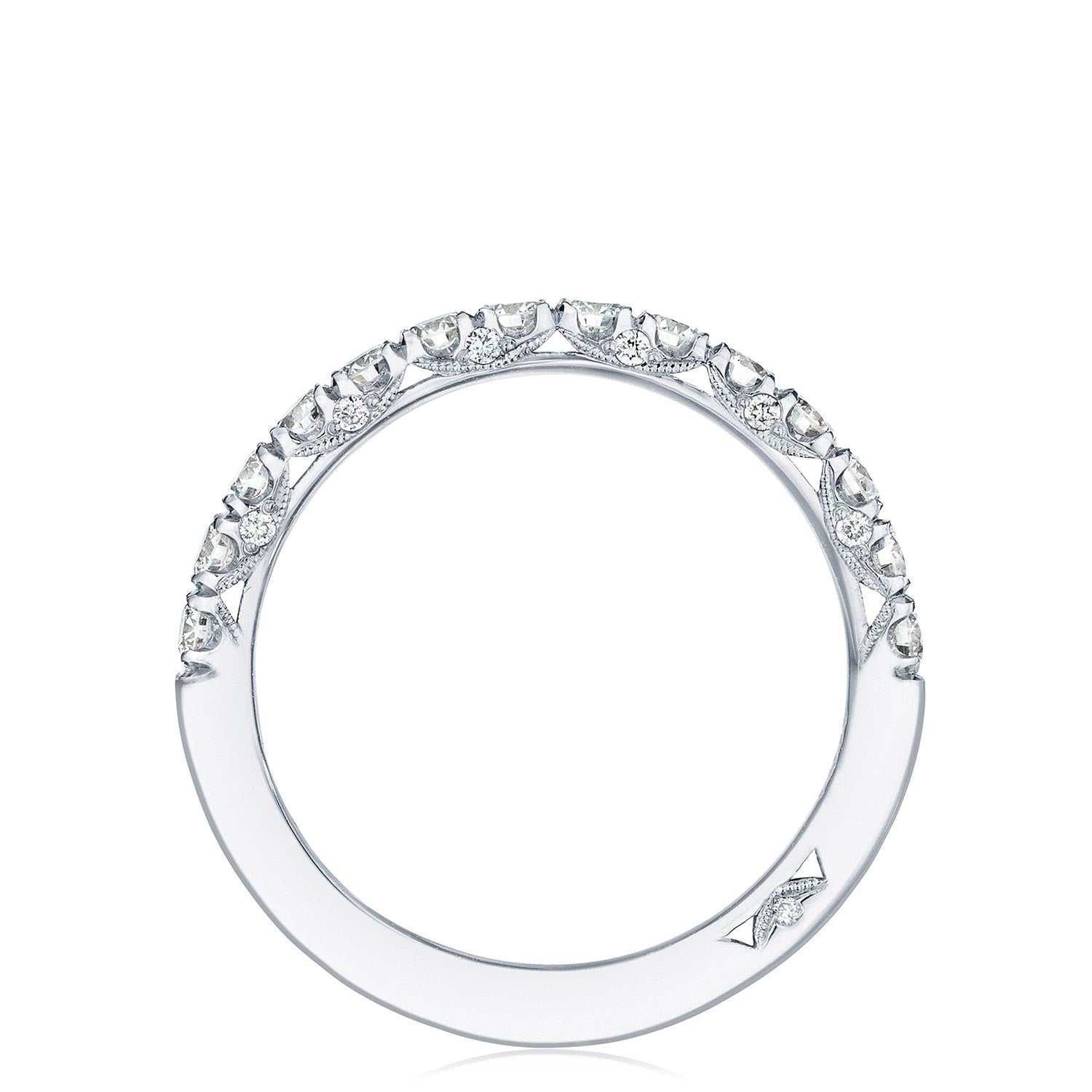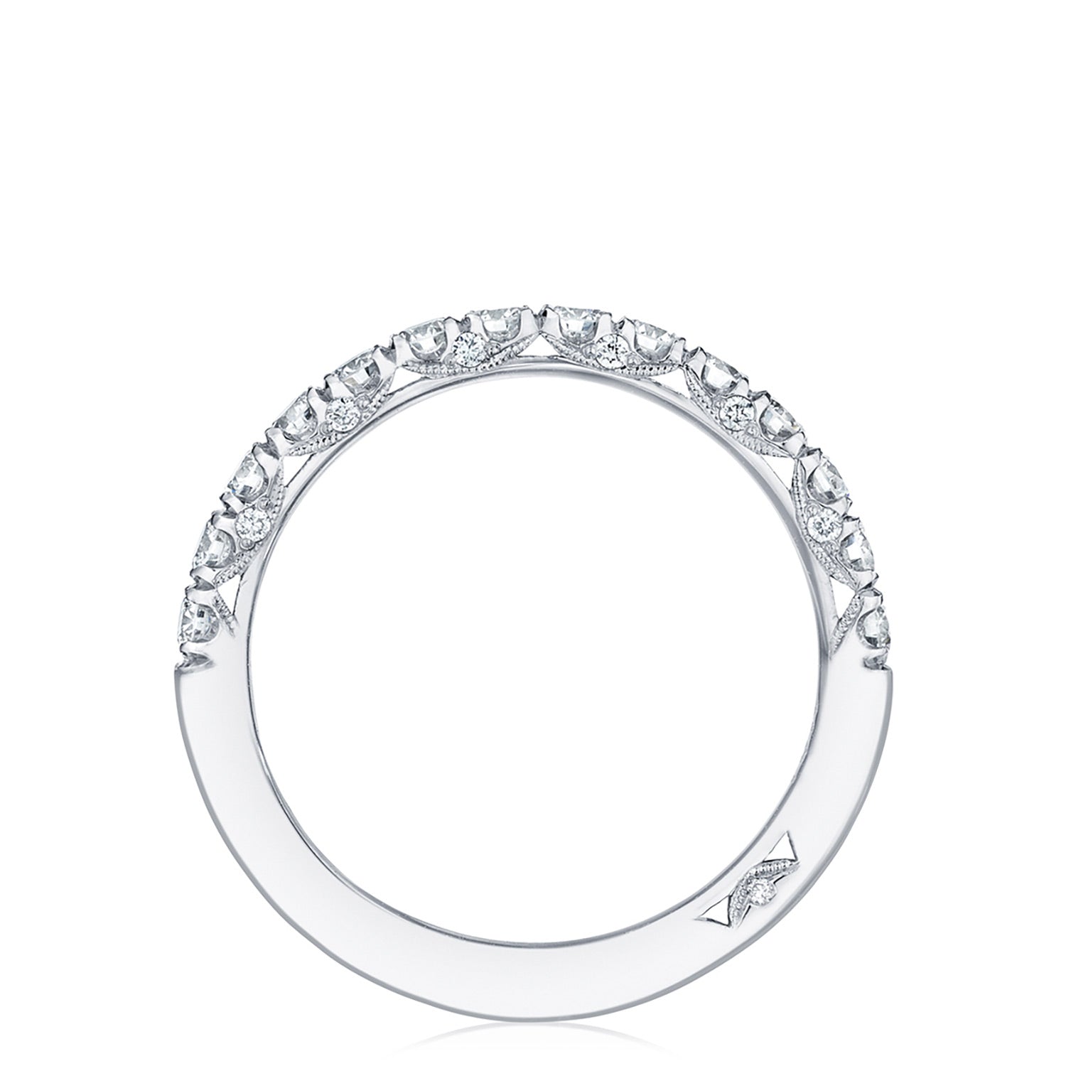 A beautiful string of diamonds on a 2.5mm band with a Petite Crescent inner face.
