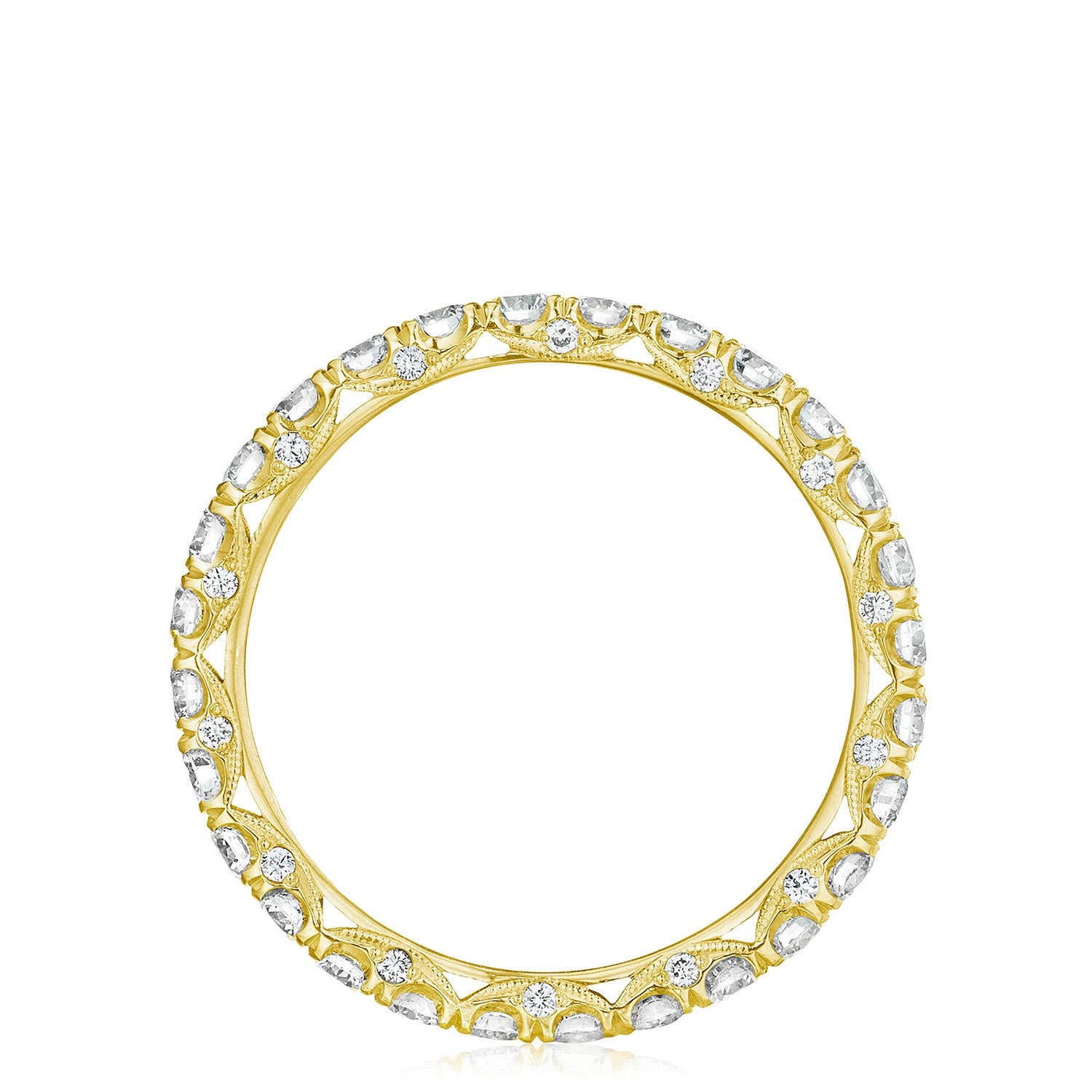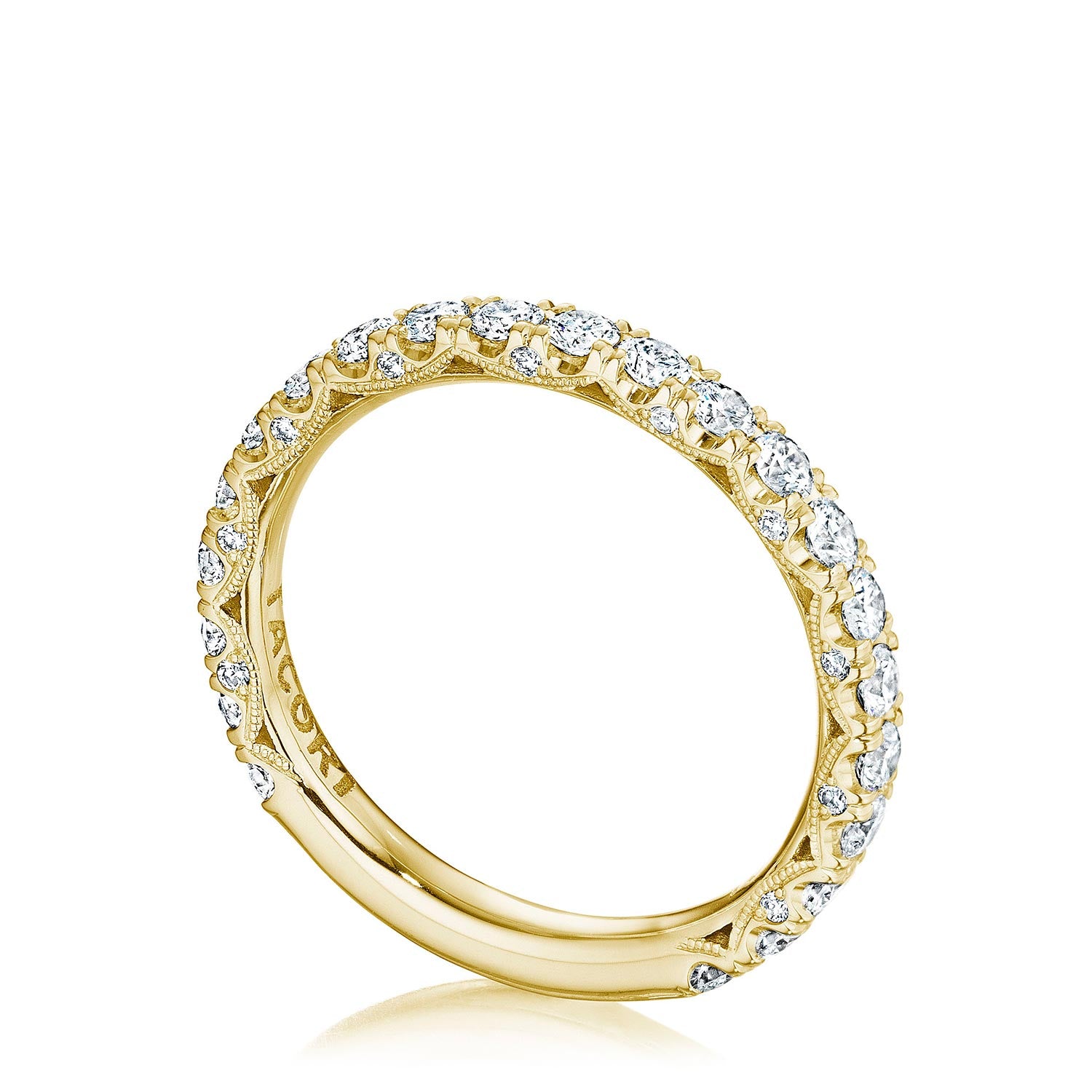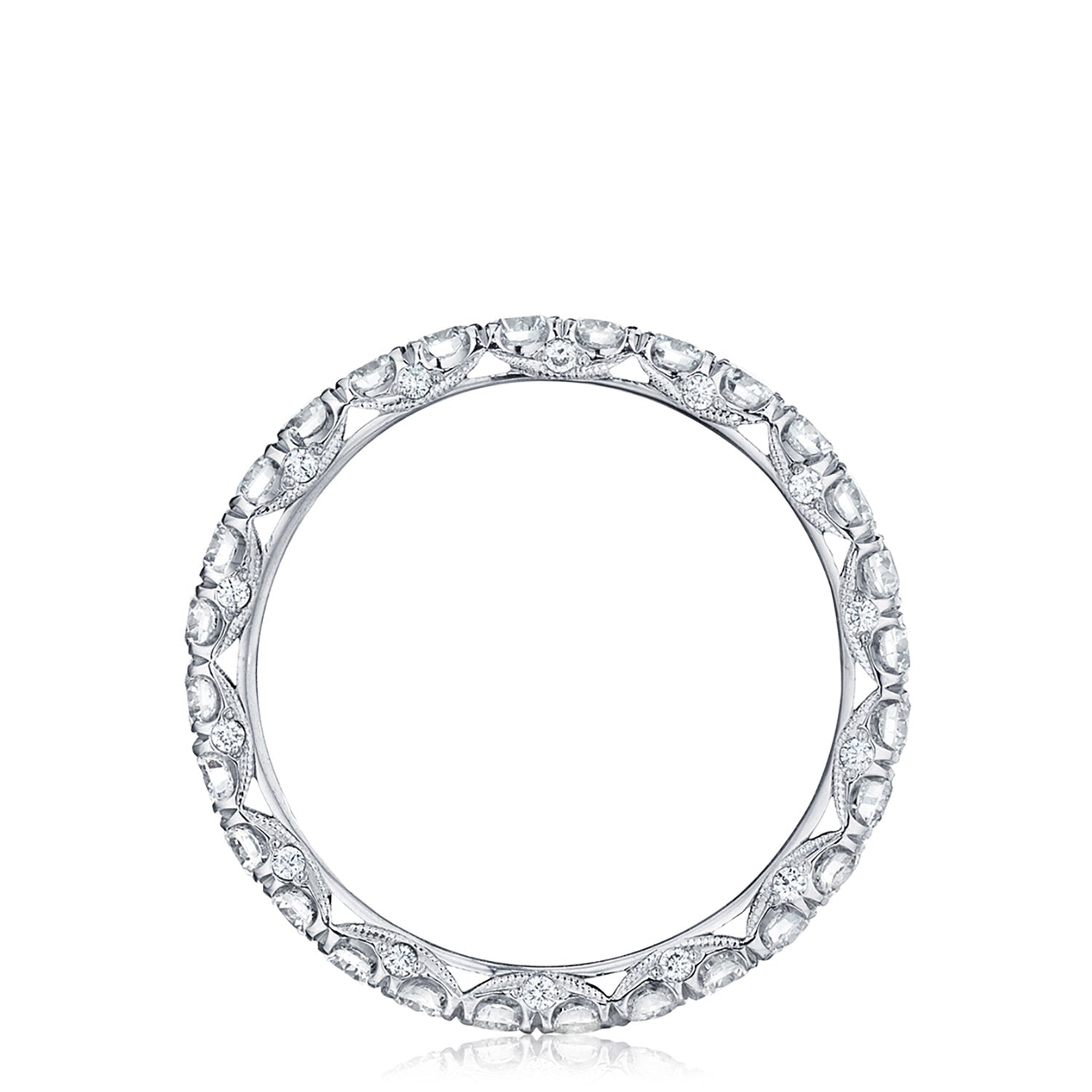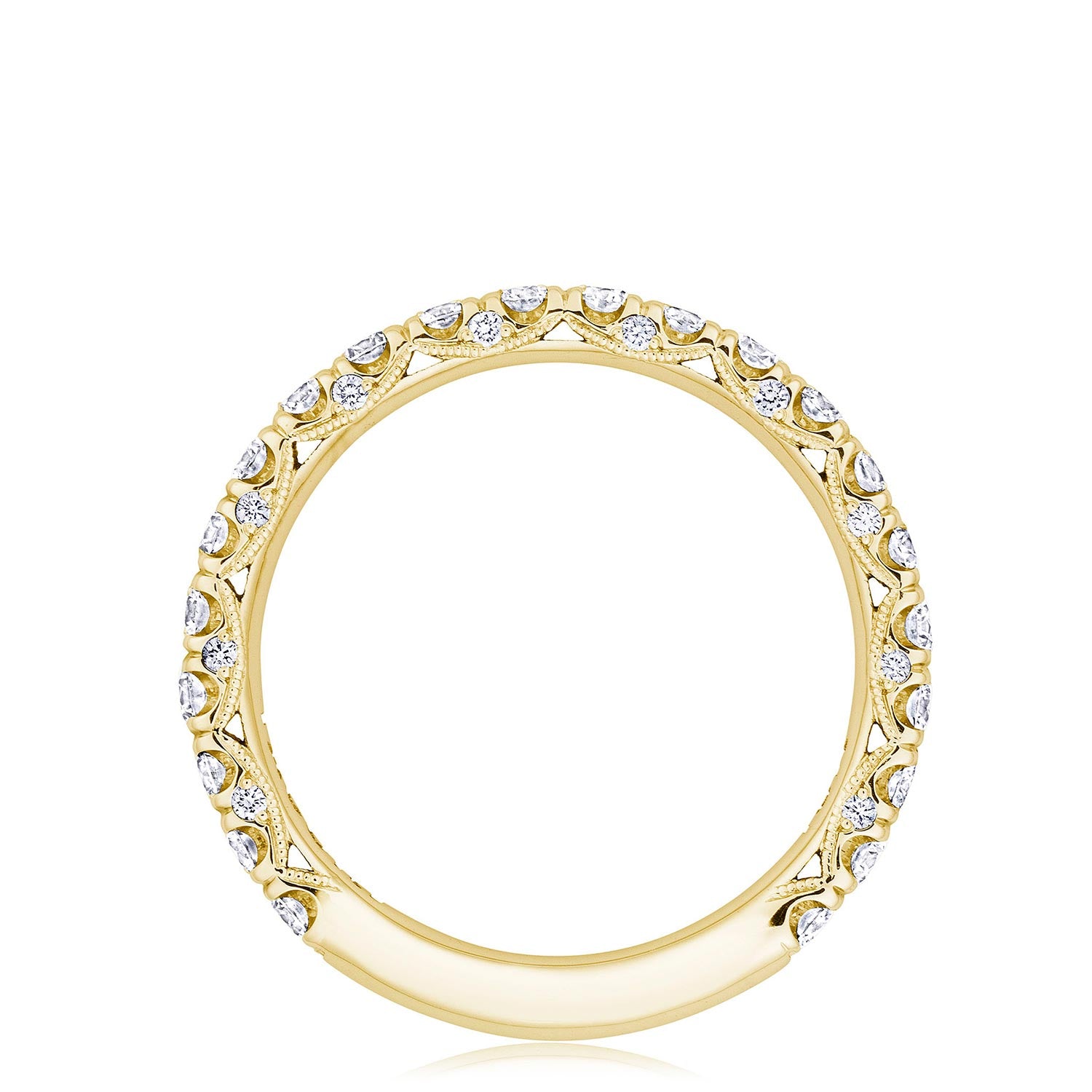 A beautiful string of diamonds on a 2.5mm band with a Petite Crescent inner face.