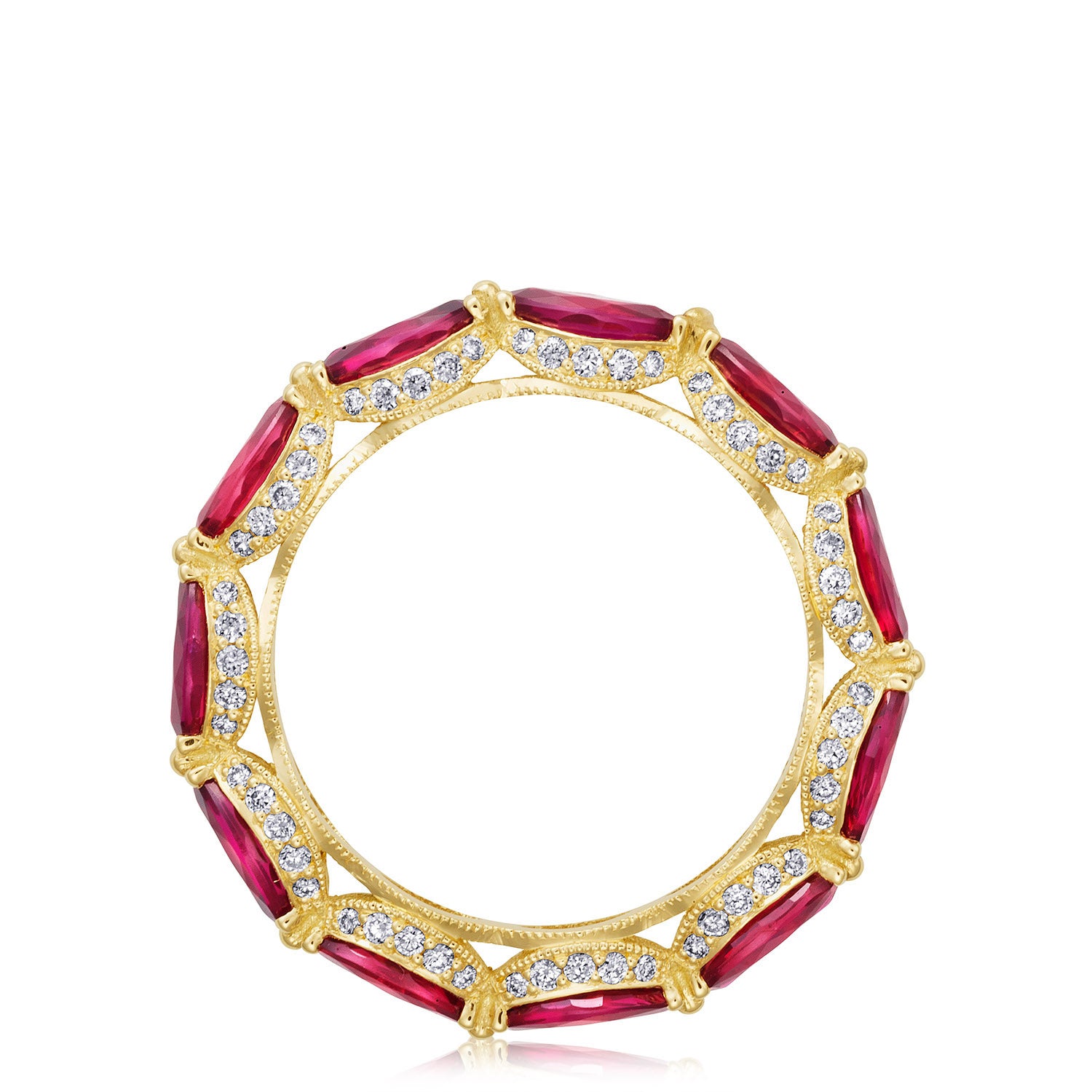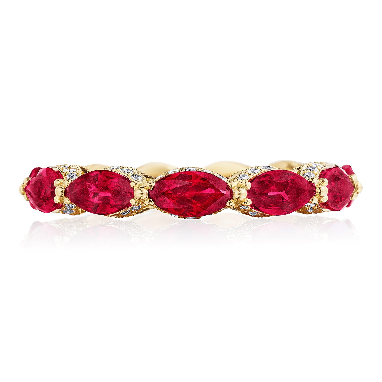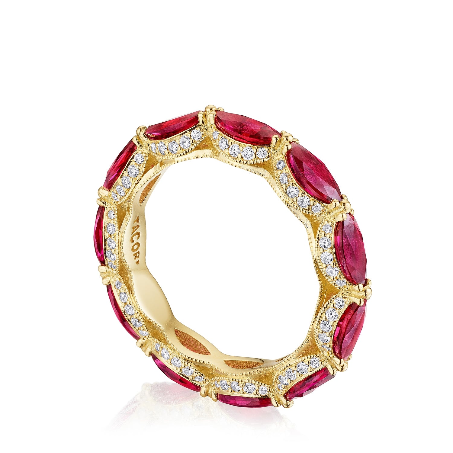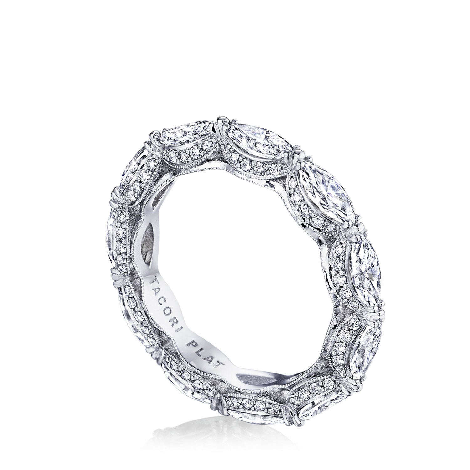 An eternity of marquise-shape diamonds decorate the exterior of the ring, while diamond-studded Classic Crescent fabric illuminates the inner face silhoutte and contributes windows of light.