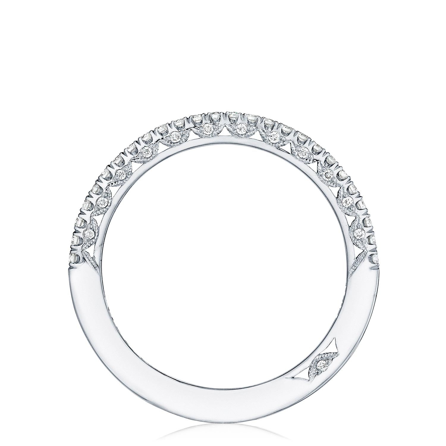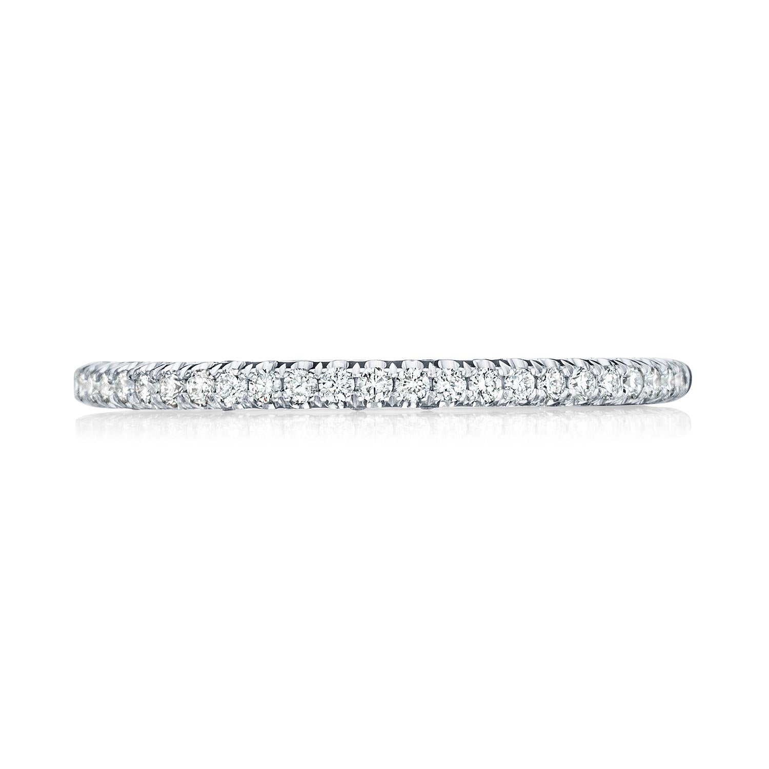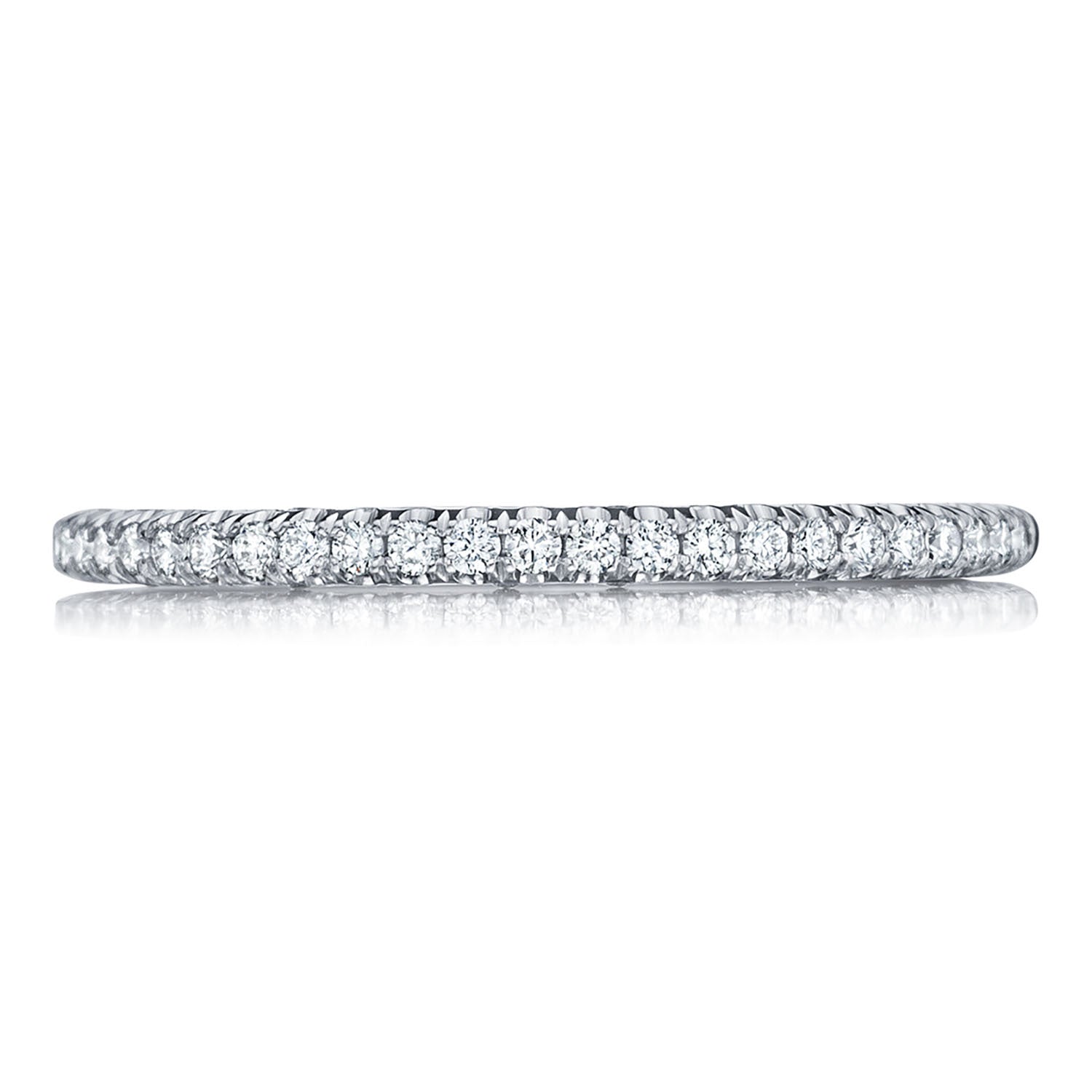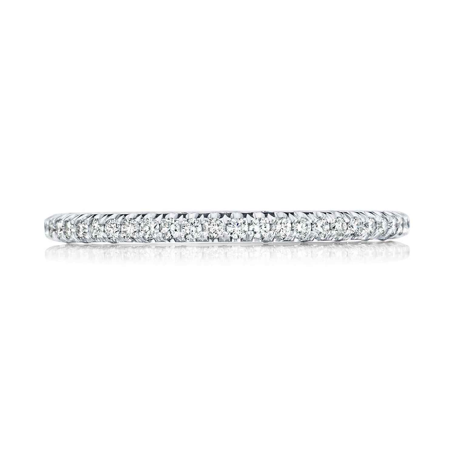 A beautiful string of diamonds on a 1.5mm band with a Petite Crescent inner face.
