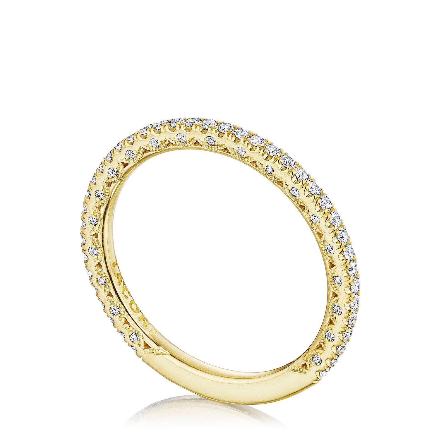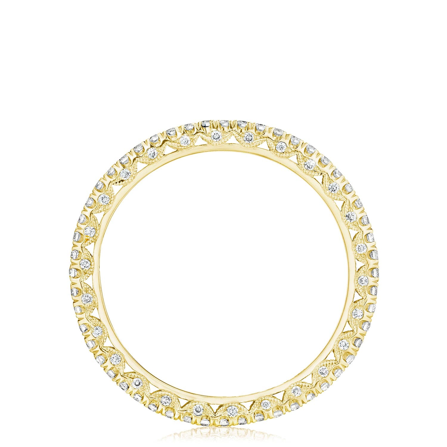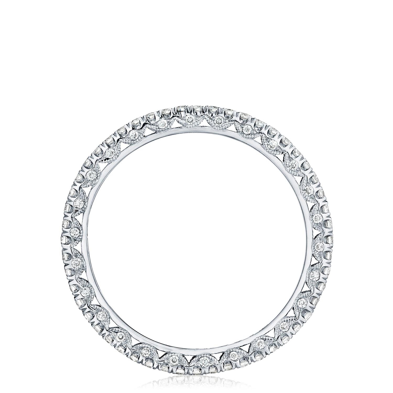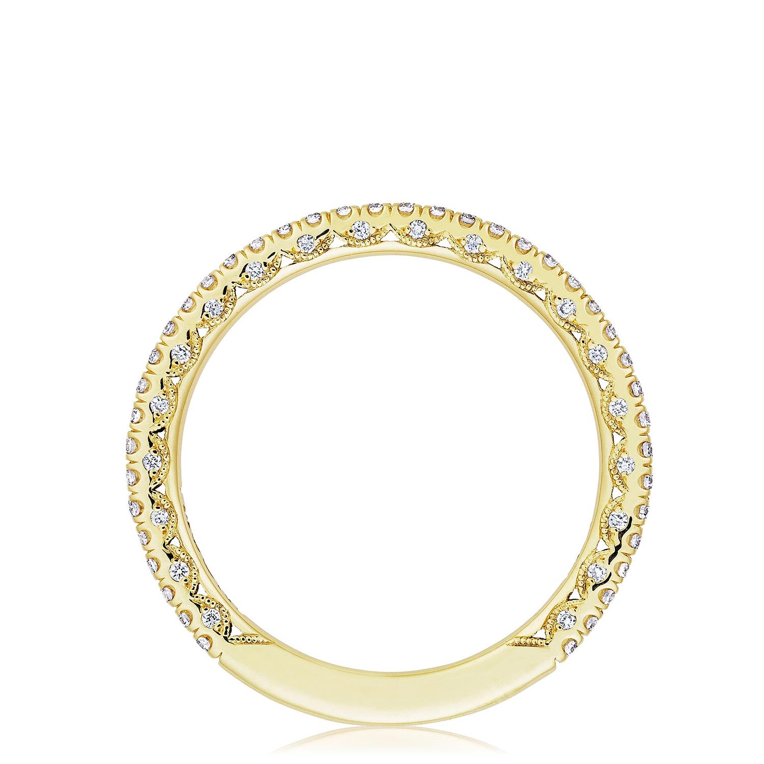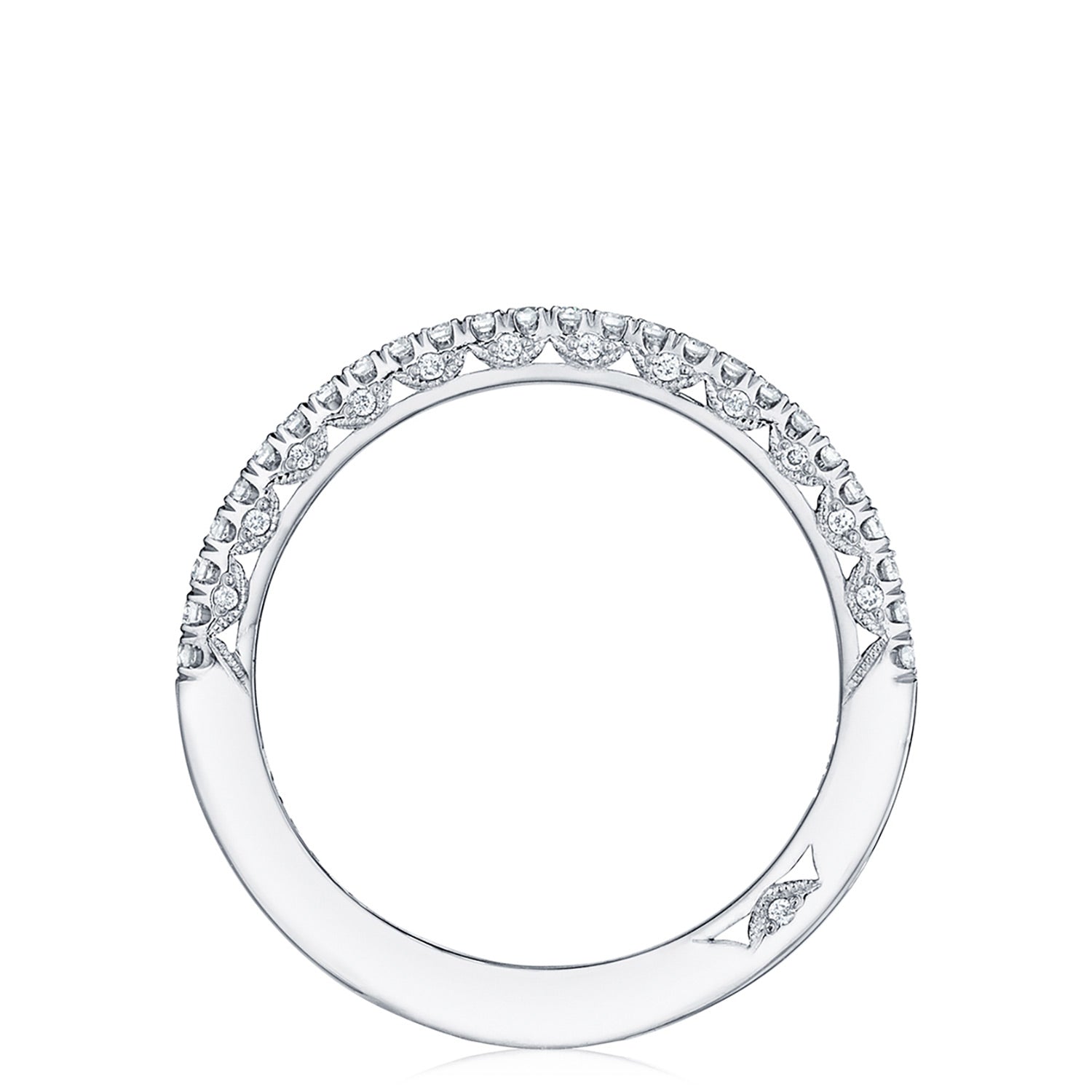 A beautiful string of diamonds on a 1.5mm band with a Petite Crescent inner face.