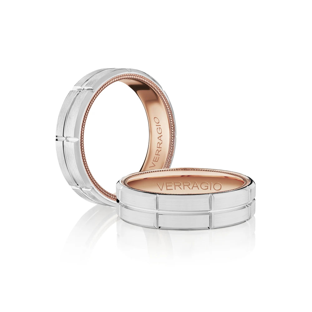 VW-6026 is a handsome 6MM width matte finish men's band with a modern design. Enriching this band along the interior is Verragio's timeless signature rose gold beading. Designed to stand the test of time.
