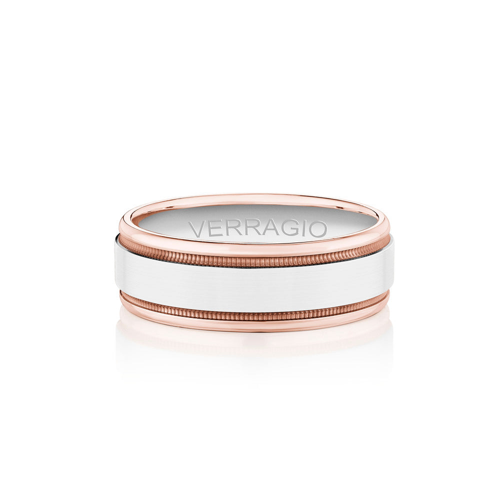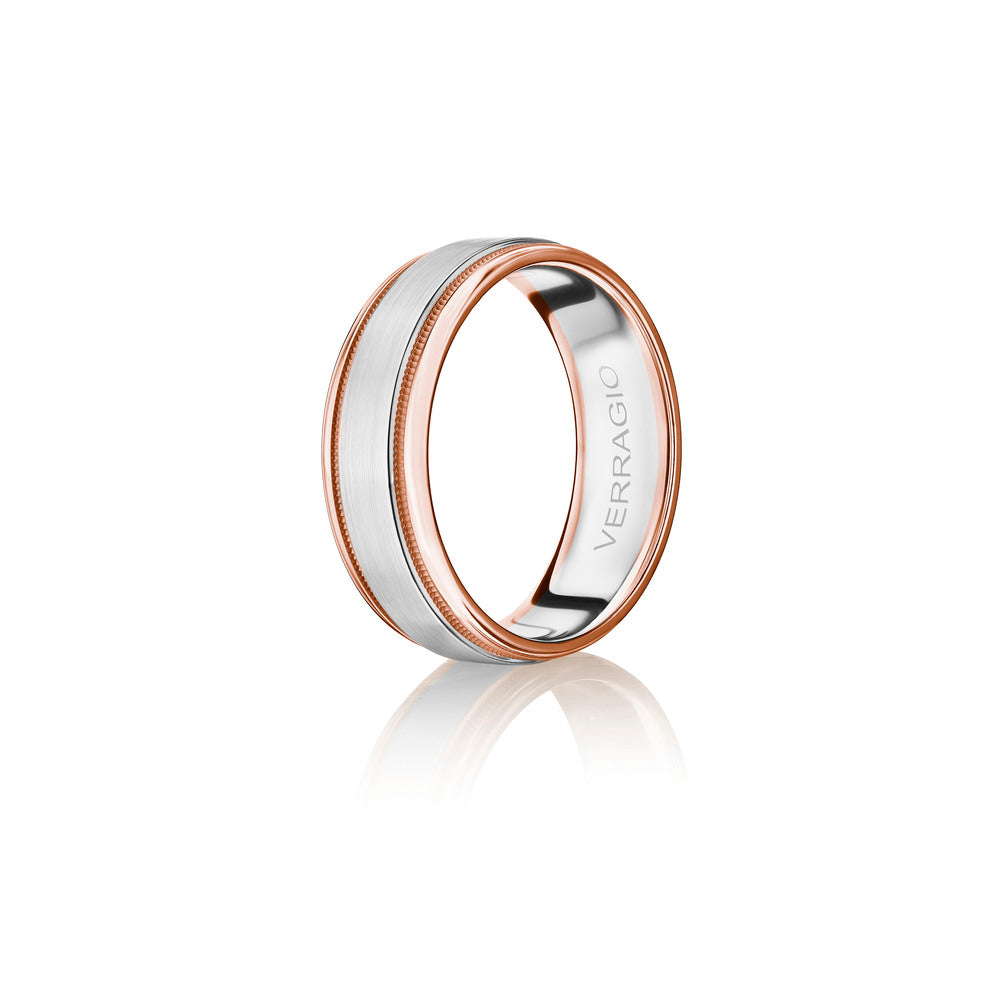 One of our latest wedding band designs in a 7mm width with a matte finish and polished edges, made complete with signature Verragio bead-work giving it a tailored feel. Whether you prefer modern or traditional styles, these wedding bands are precisely crafted with artisanal details to stand out.