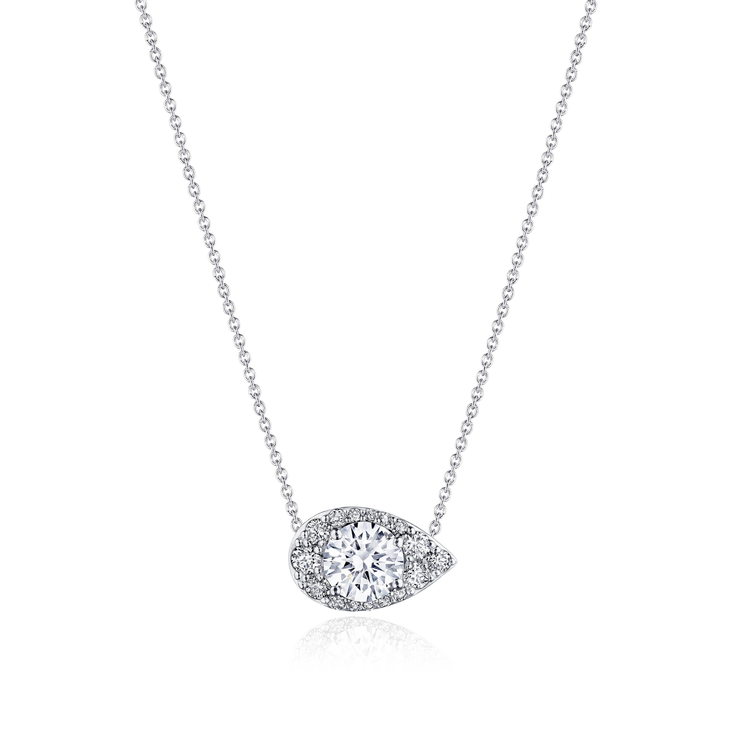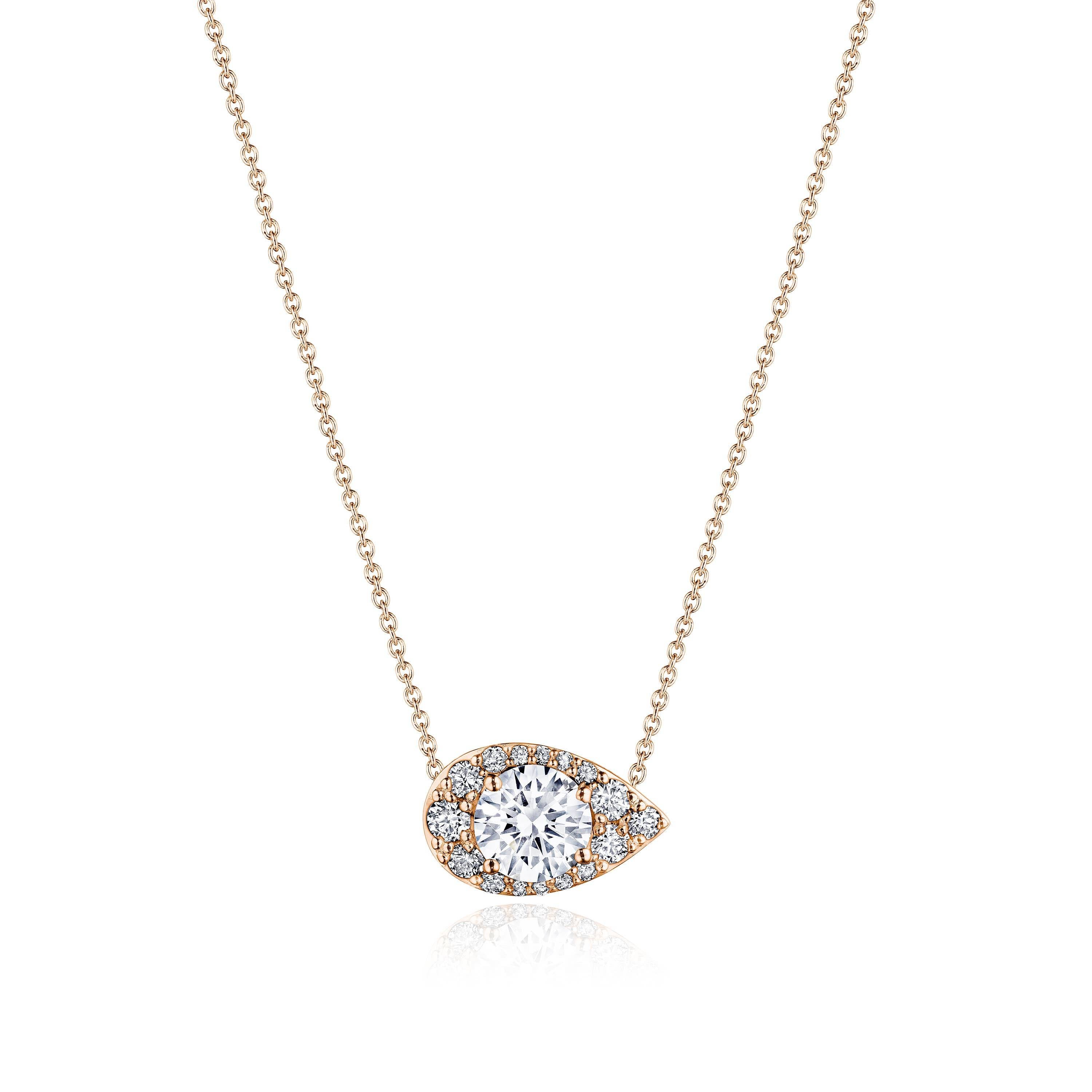 A pear bloom of spotlight diamonds is set East-West on a dainty chain, transforming the center diamond into a shape totally its own, while adding clarifying depth and dimension to the pendant. Center diamond sold separately.