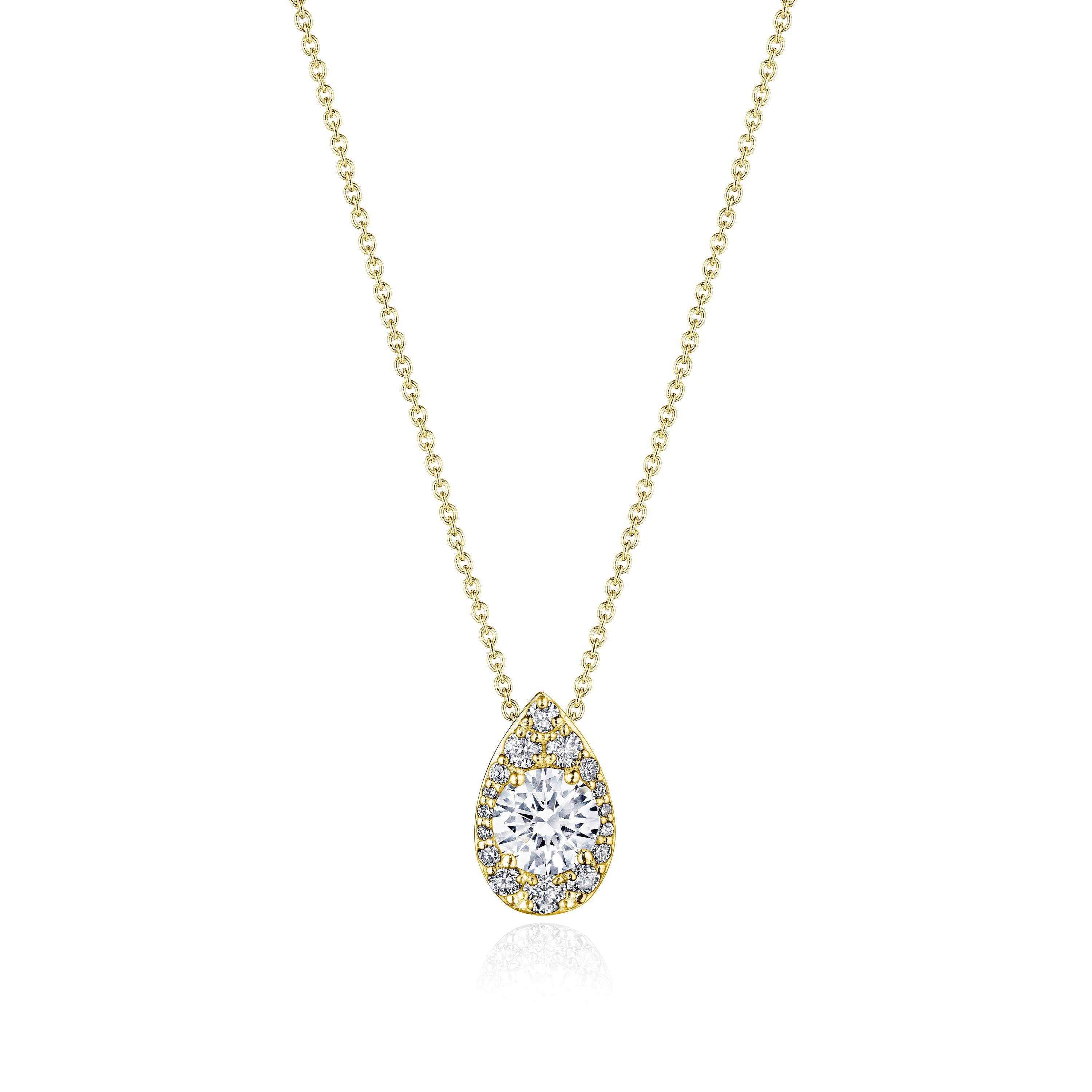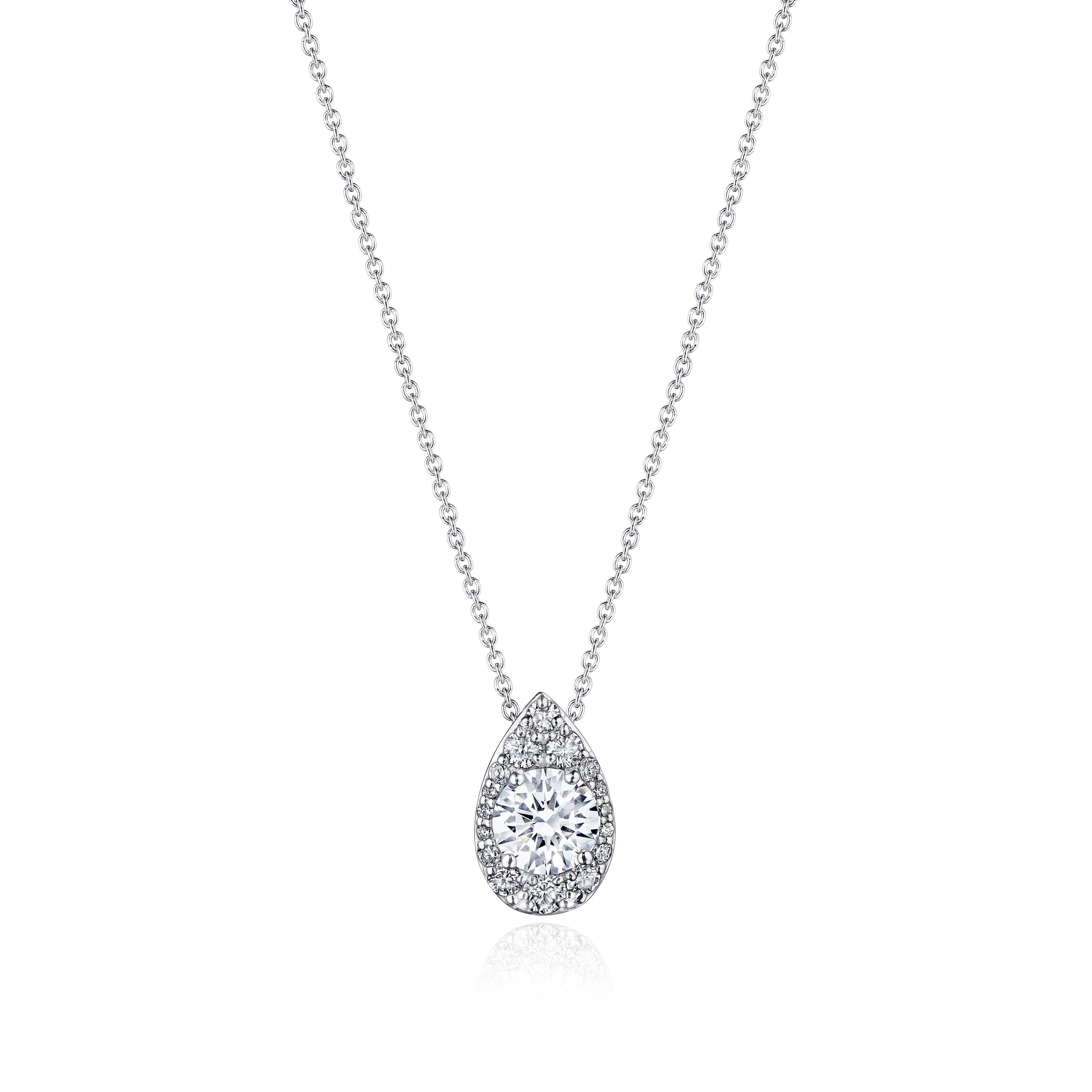 A pear bloom of spotlight diamonds is set on a dainty chain, transforming the center diamond into a shape totally its own, while adding clarifying depth and dimension to the pendant. Center diamond sold separately.