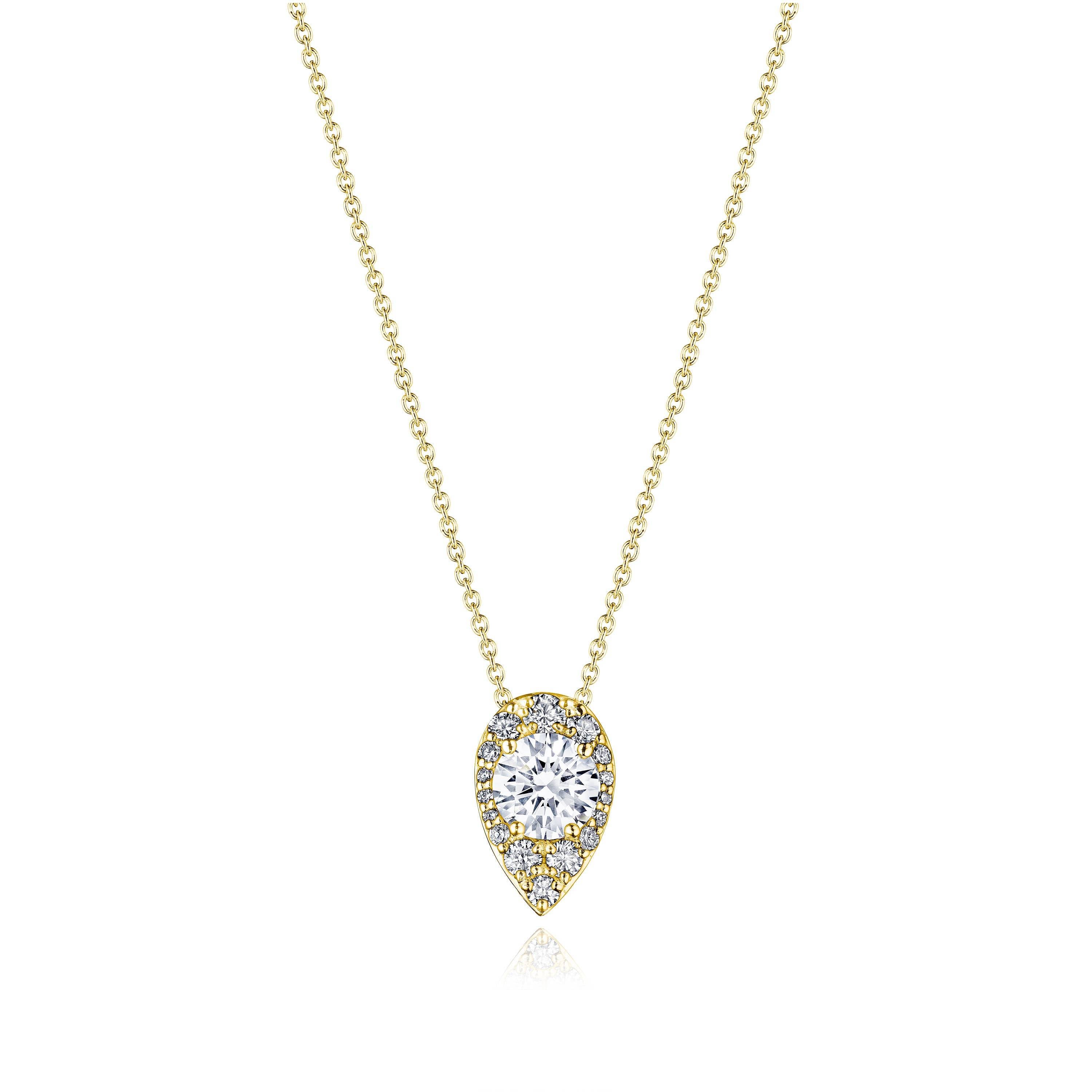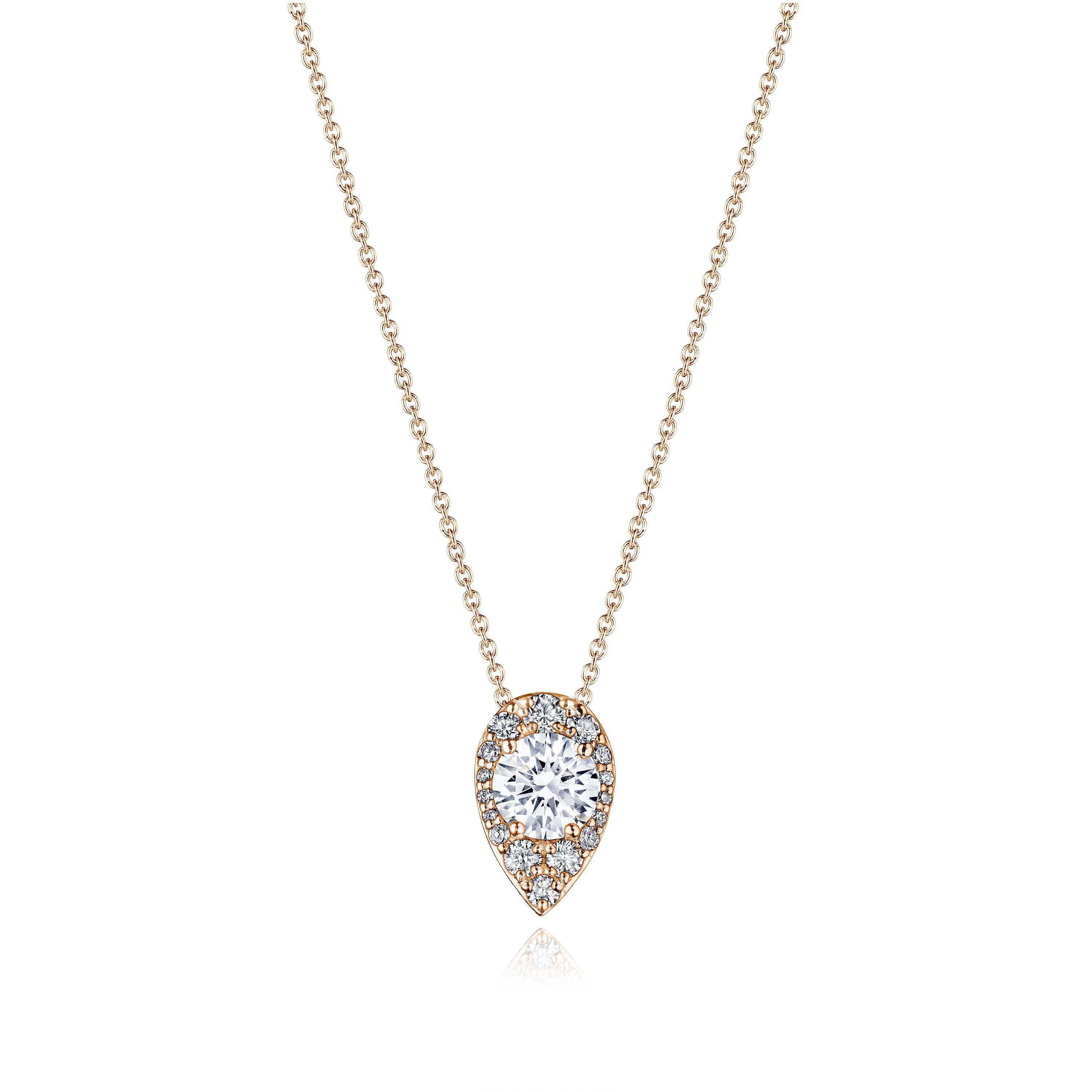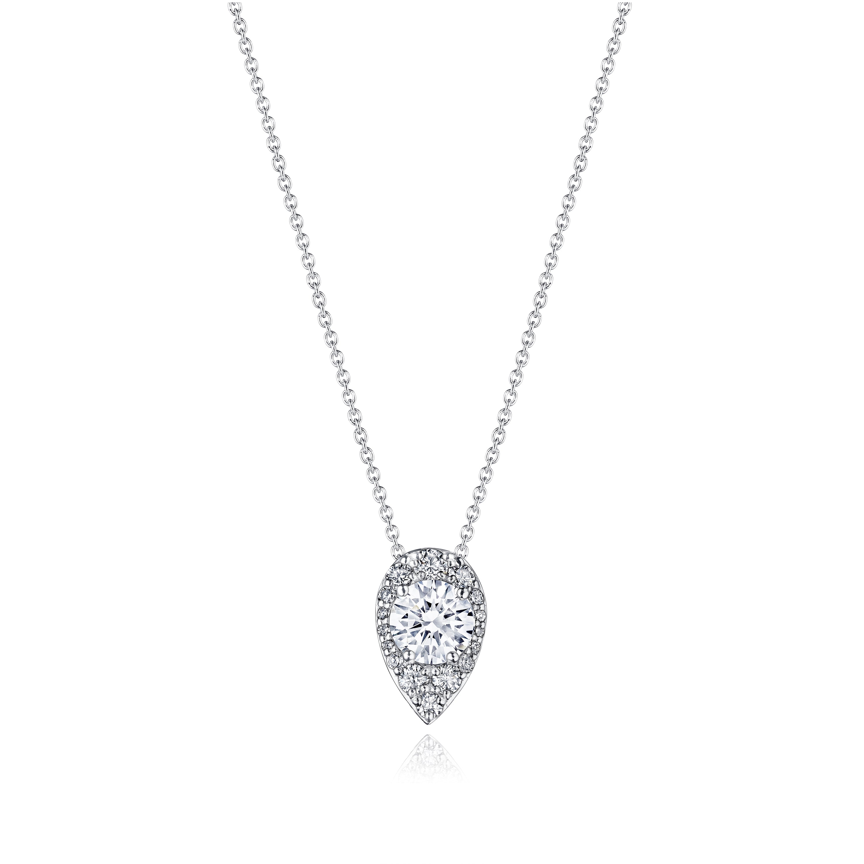 A pear bloom of spotlight diamonds is set North-South on a dainty chain, transforming the center diamond into a shape totally its own, while adding clarifying depth and dimension to the pendant. Center diamond sold separately.