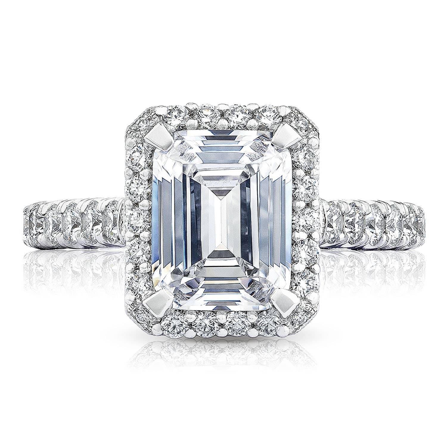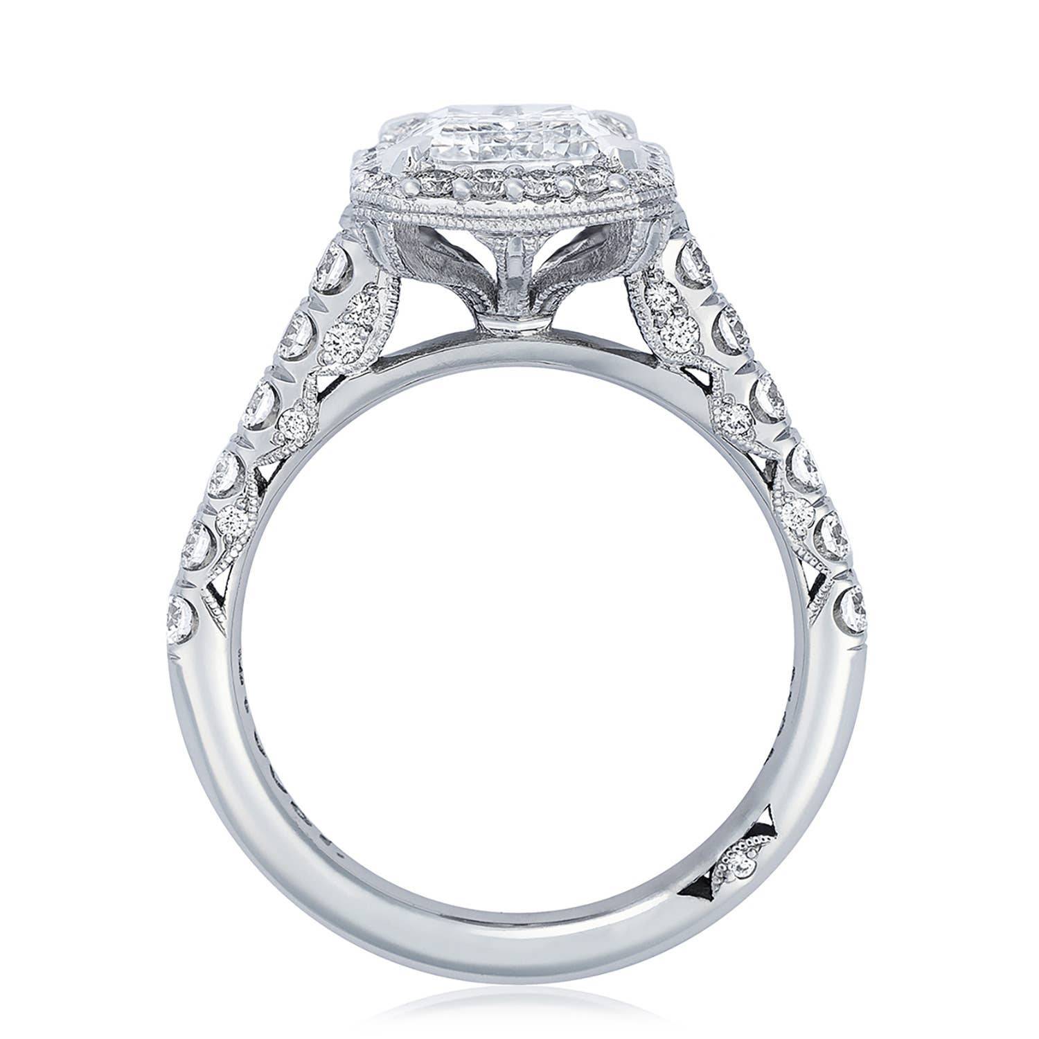 Pave diamonds on the ceiling lead to the center stone, which is circled by a Tacori bloom and set on a Cathedral foundation. The diamond-studded Petite Crescent fabric adds windows of light, and a Signature Crescent marks the resting point.