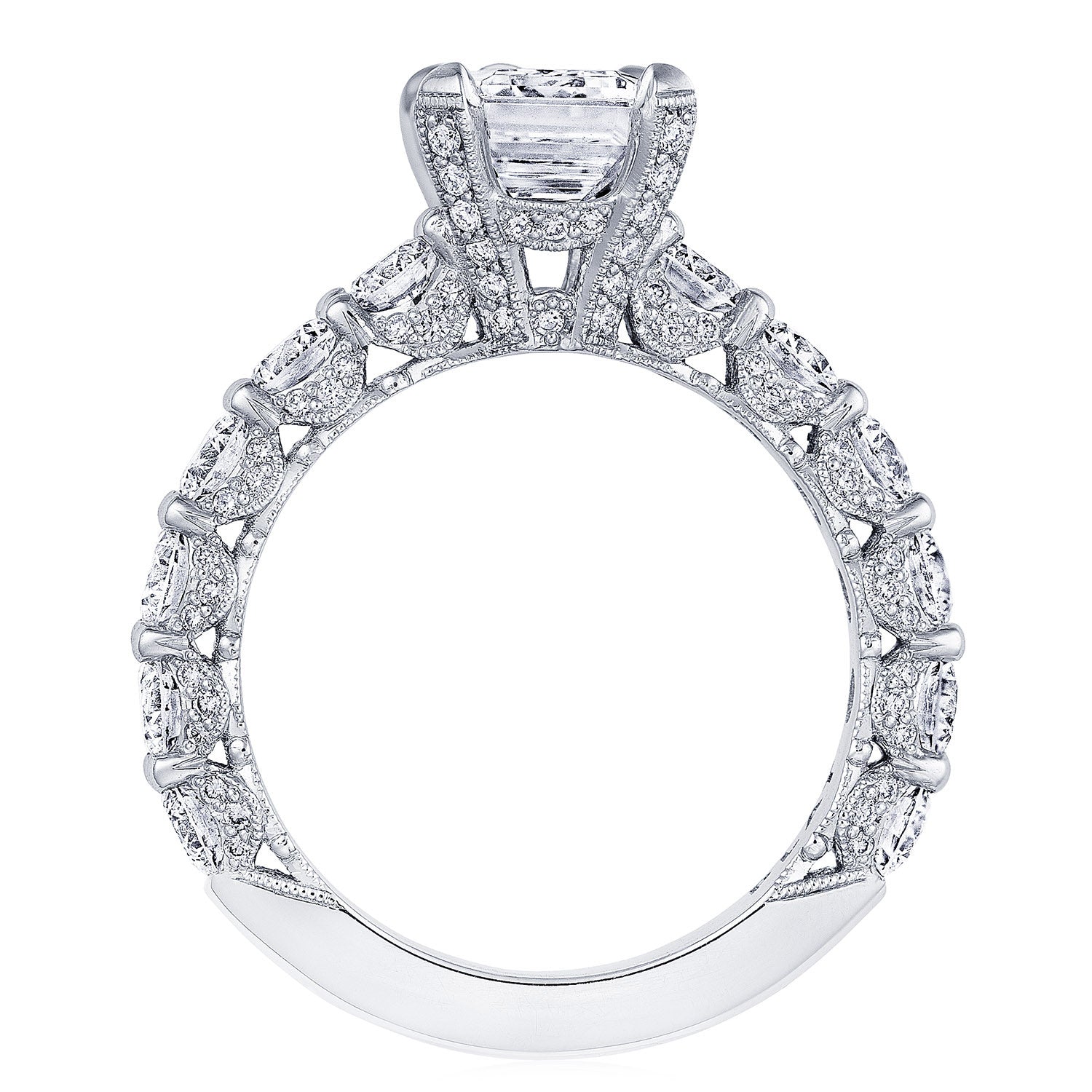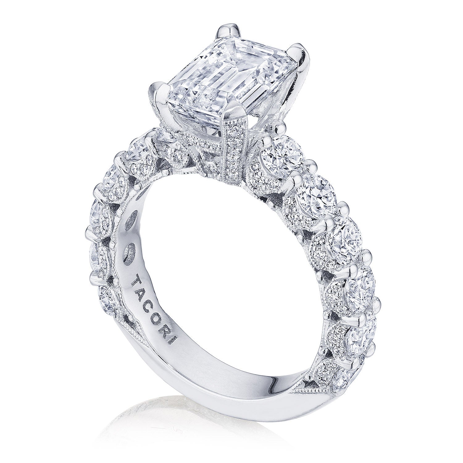 Intense and intricate diamond studding embellishes the Classic Crescent fabric, while round-brilliant diamonds lead up the ceiling towards the solitaire. More diamond detailing is found on the prongs of the Classic 360 foundation.