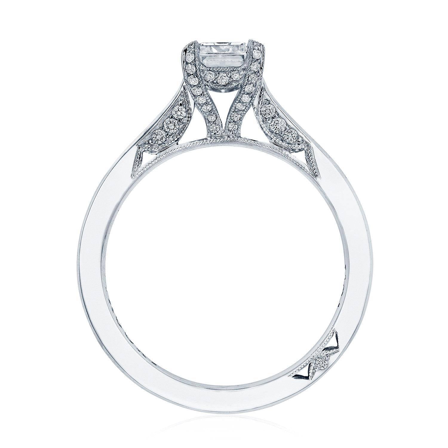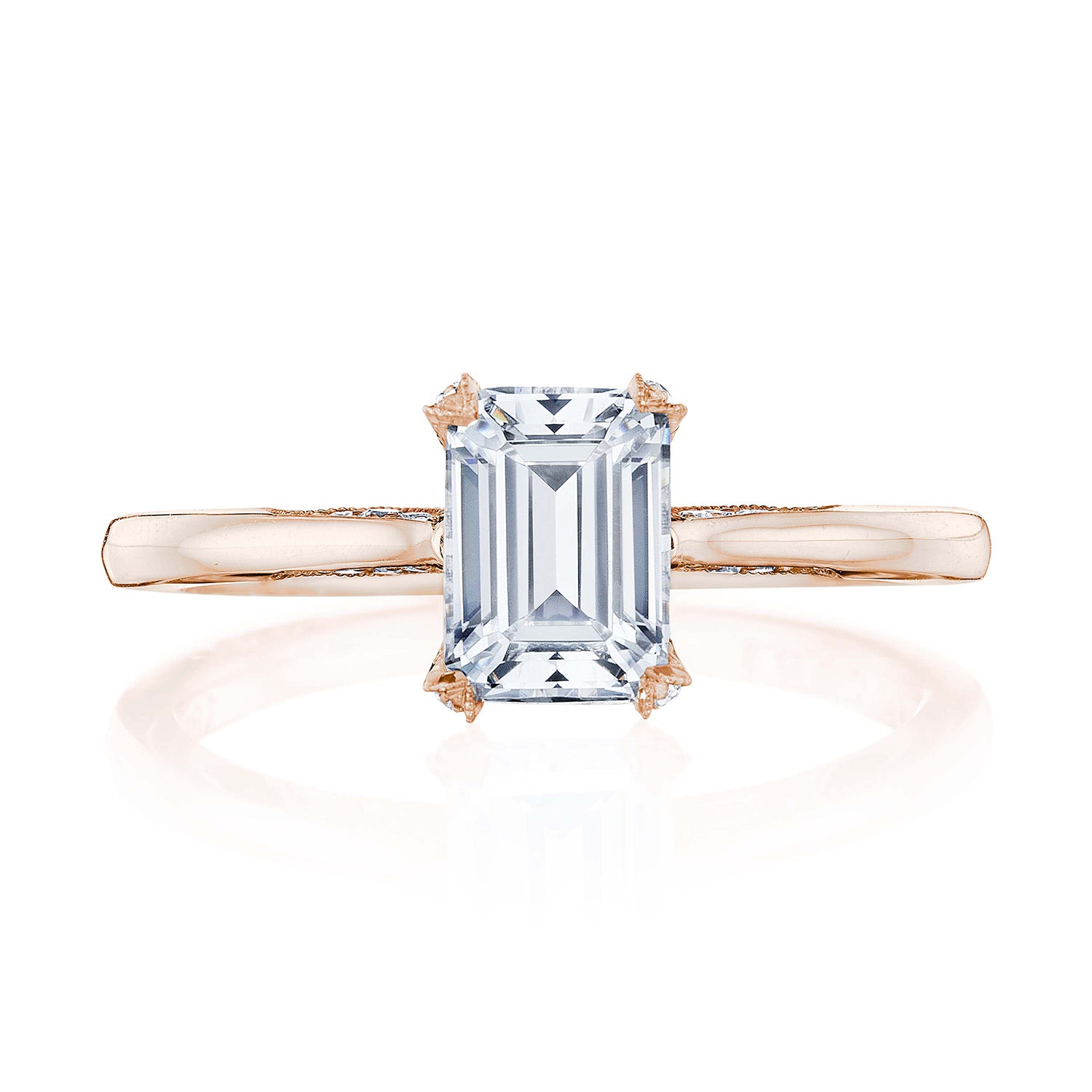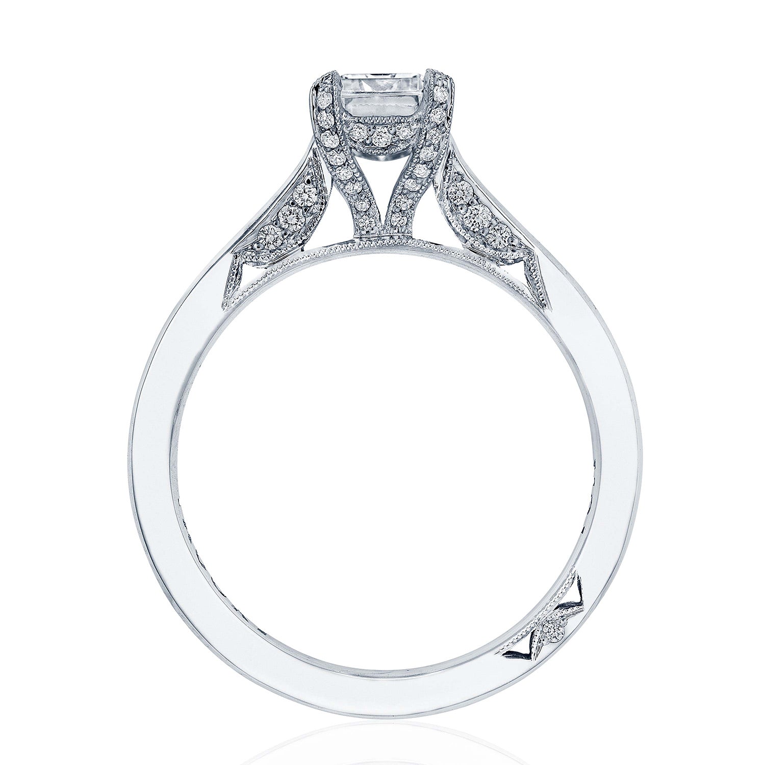 An effortlessly modern high-polish band is lightly embellished with diamond-studded Simply TACORI crescent fabric. The Cathedral Foundation boasts more round brilliant diamonds, and a hidden bloom makes the silhouette shine from all angles.