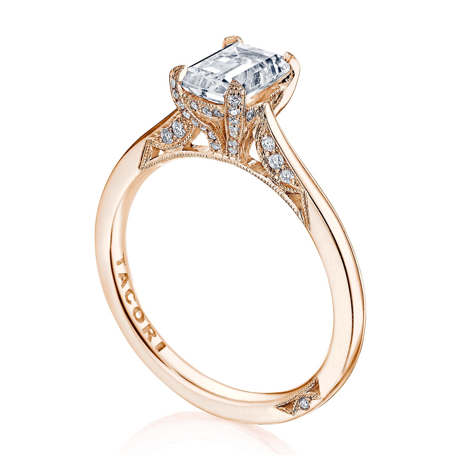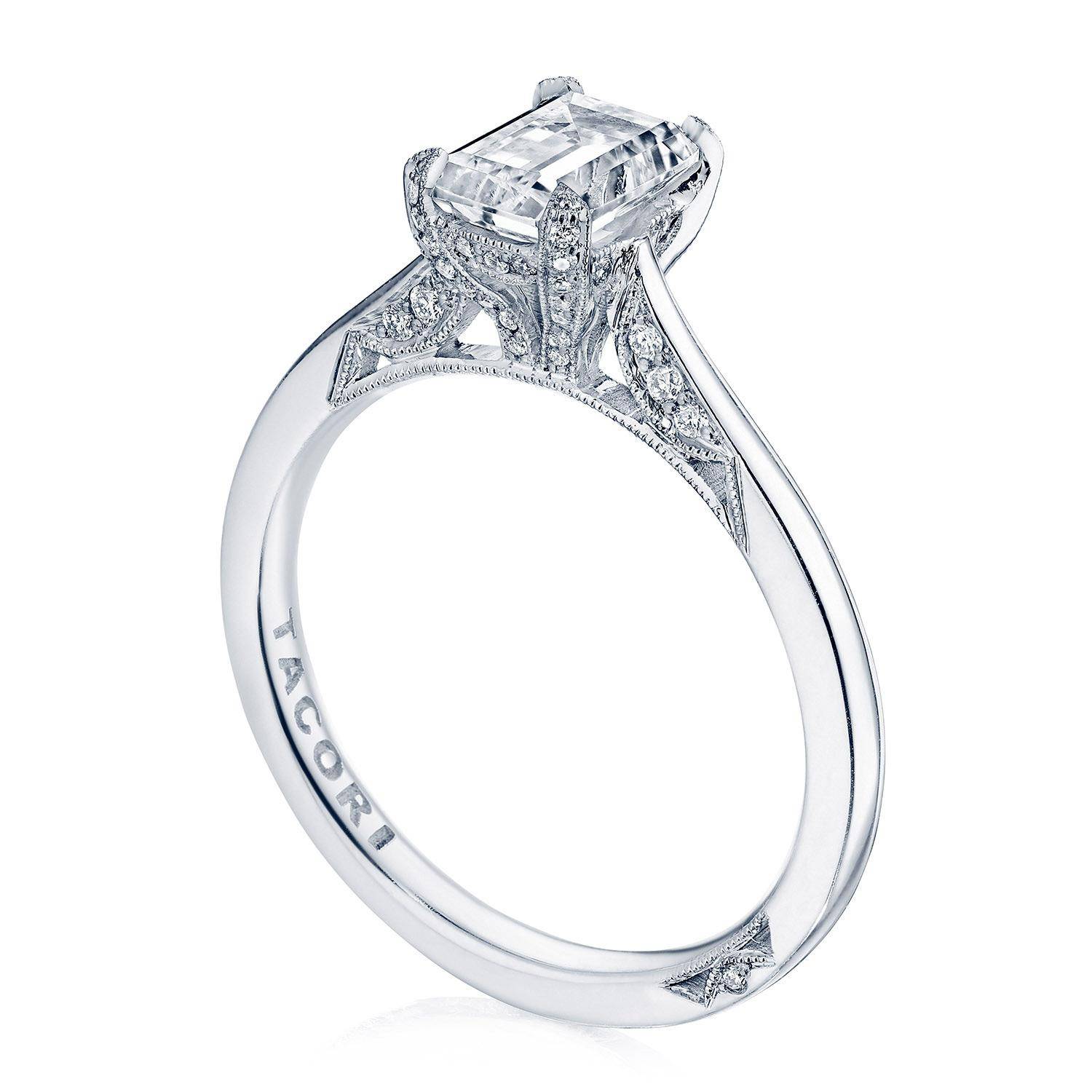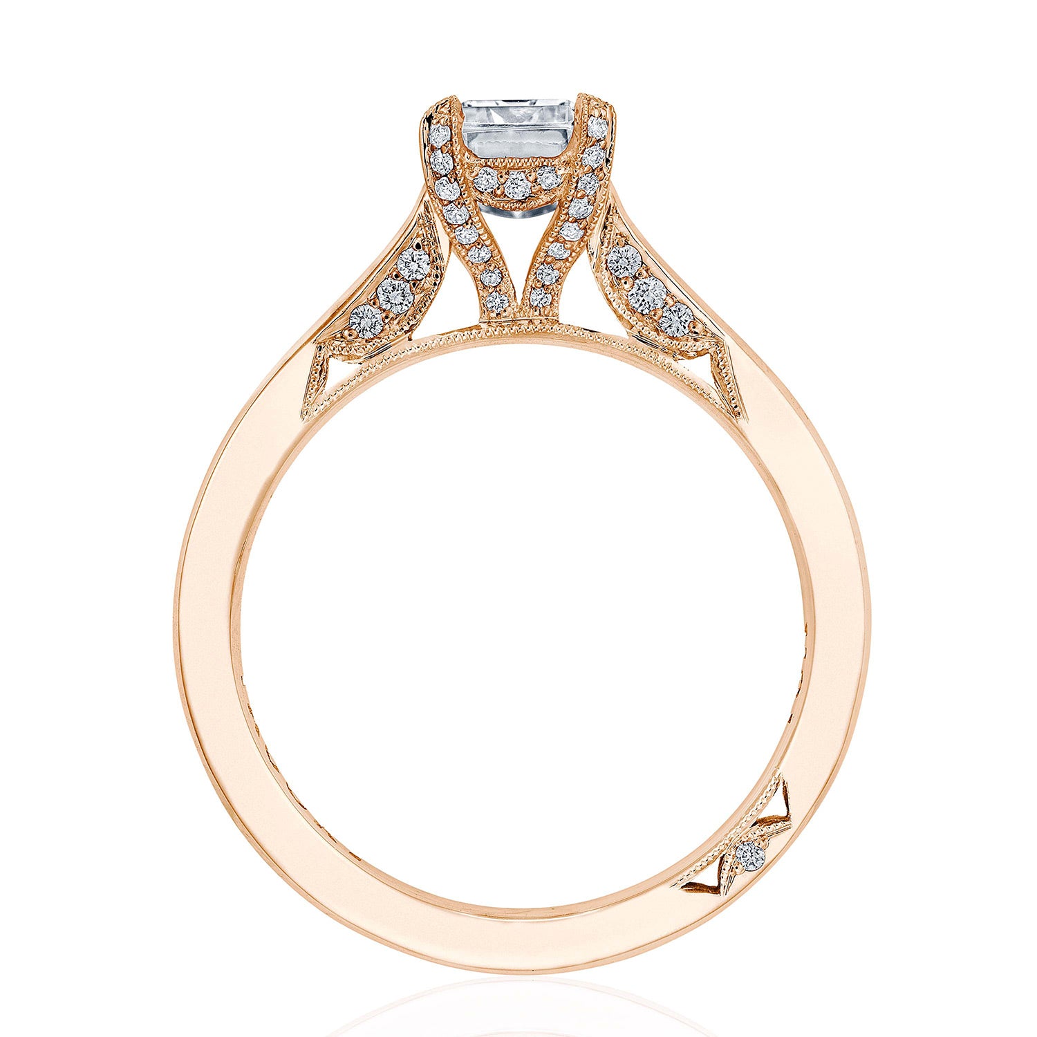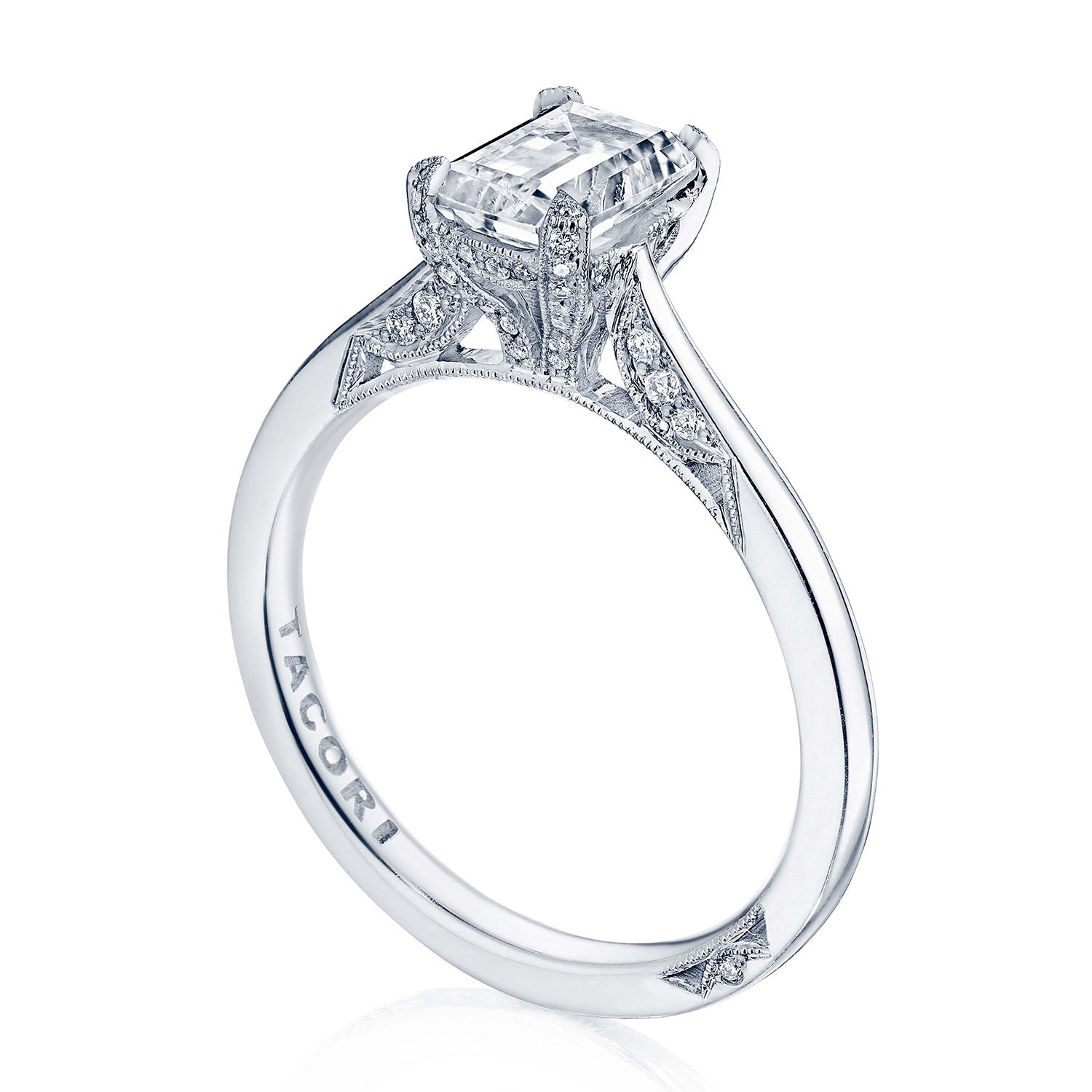 An effortlessly modern high-polish band is lightly embellished with diamond-studded Simply TACORI crescent fabric. The Cathedral Foundation boasts more round brilliant diamonds, and a hidden bloom makes the silhouette shine from all angles.