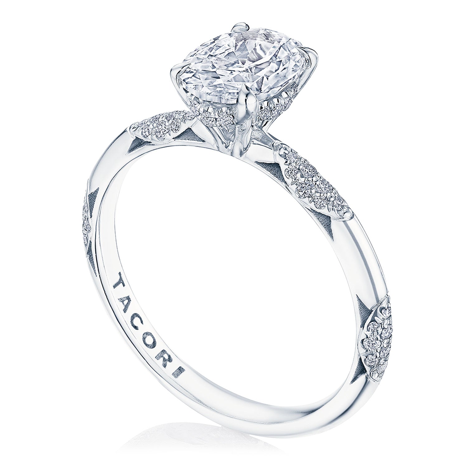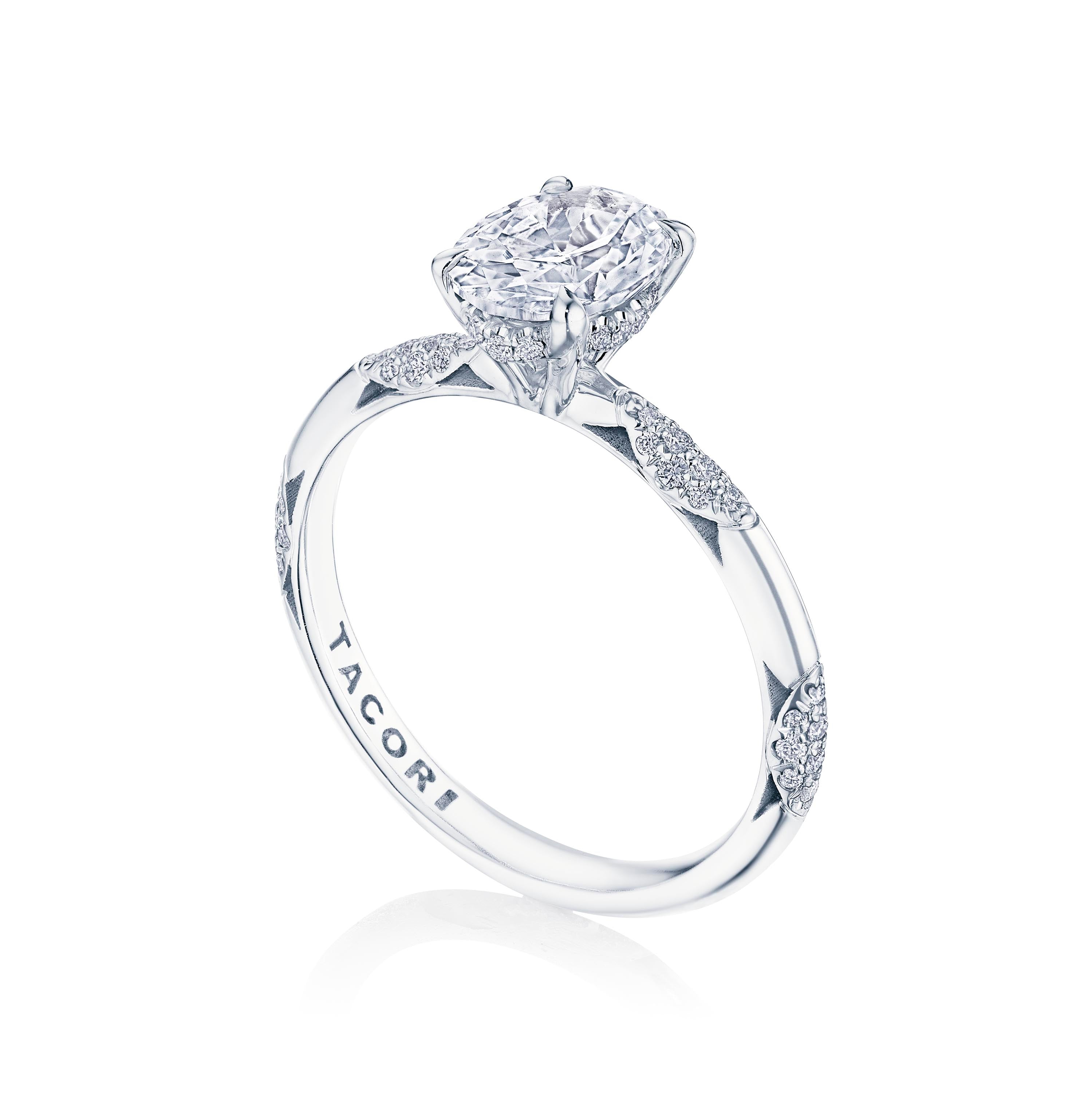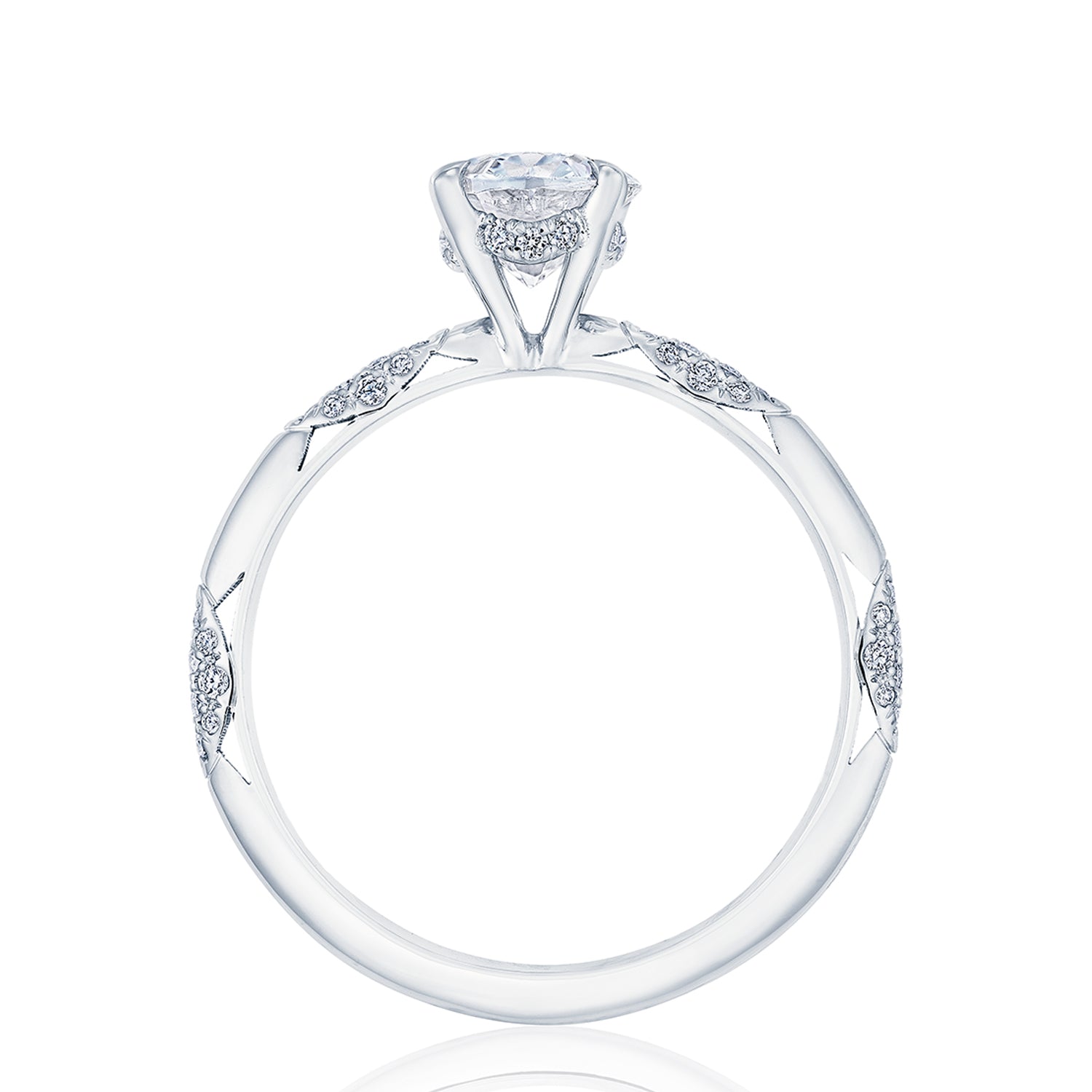 Founder's Crescents are interspersed around the high-polish band, adding distinguished diamond studding and windows of light. A hidden bloom beneath the crown adds all-angle brilliance.