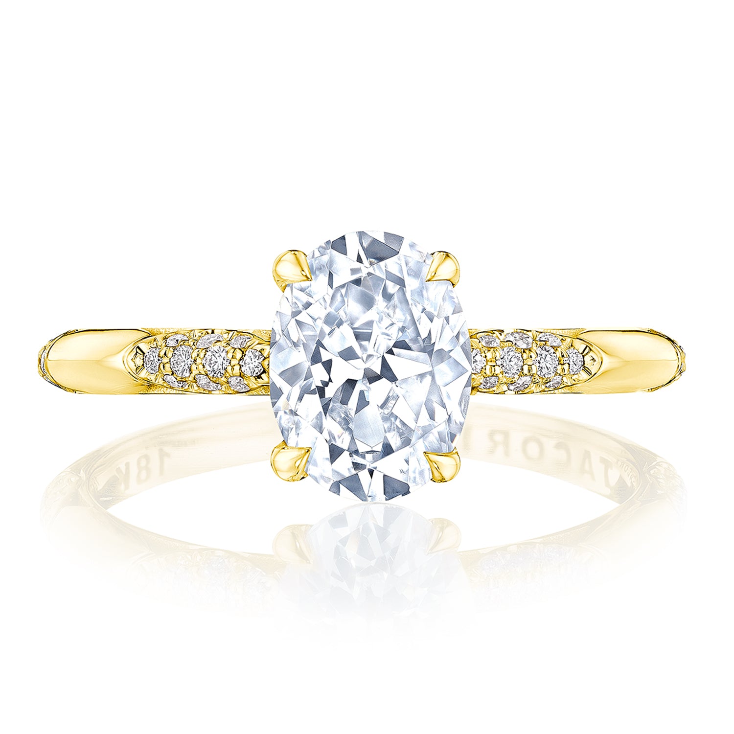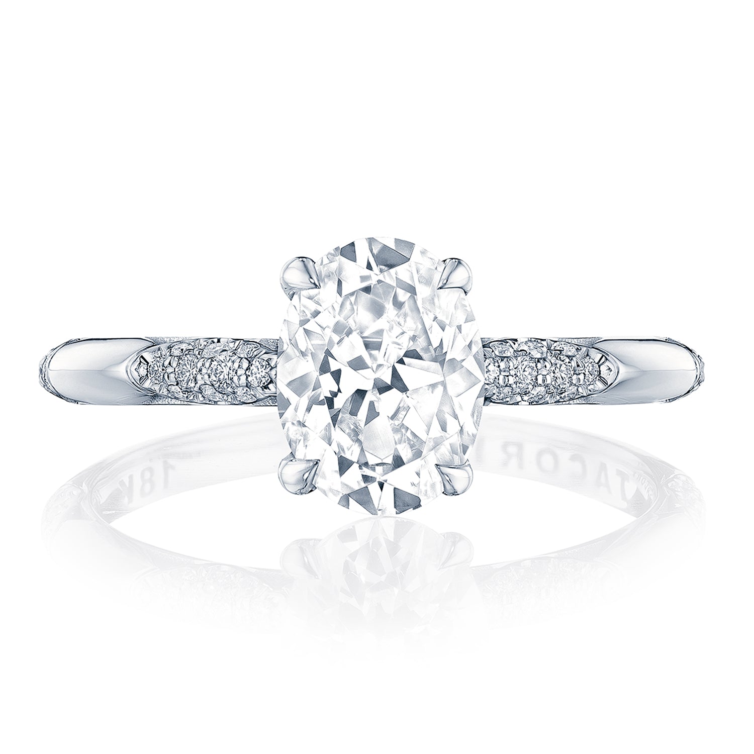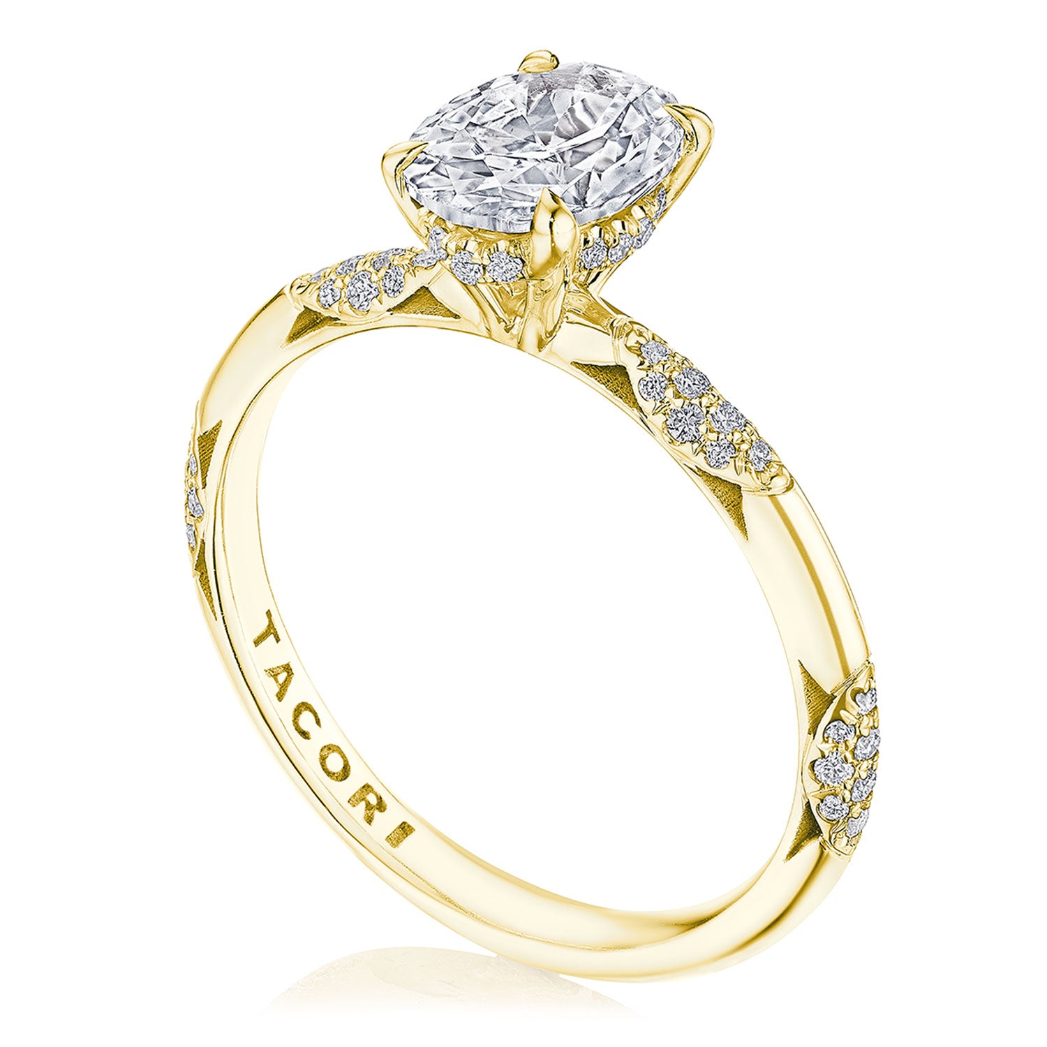 Founder's Crescents are interspersed around the high-polish band, adding distinguished diamond studding and windows of light. A hidden bloom beneath the crown adds all-angle brilliance.