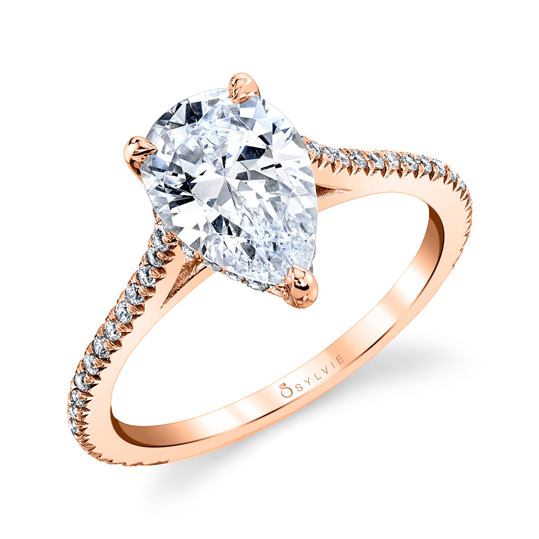 Pear Shaped Classic Hidden Halo Engagement Ring - Steffi