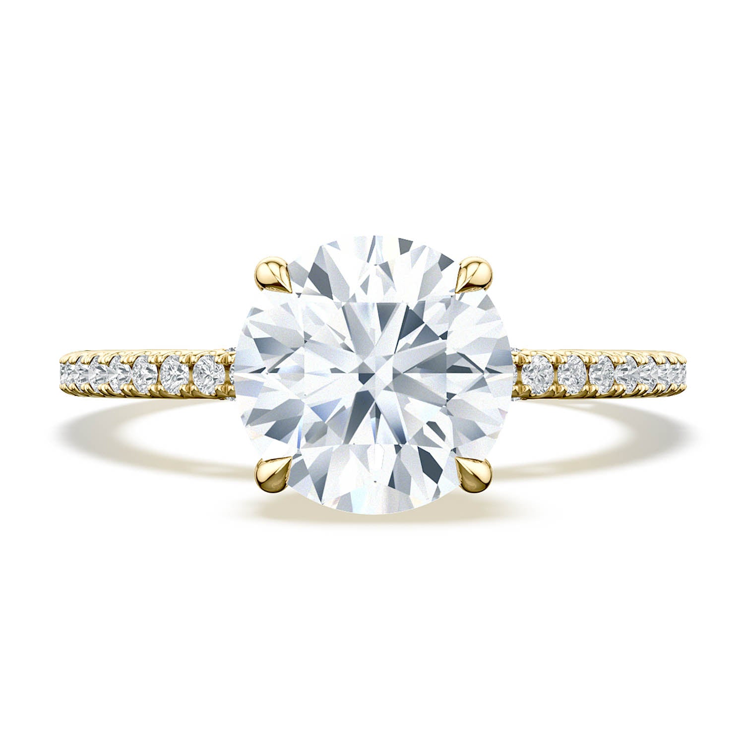 Draping milgrain from the crown is a joyful nod to the wedding day. Delicate pavé diamonds adorn the ceiling, and Simply TACORI crescent fabric decorates the inner face. A hidden bloom complements the high-polish band with an ornamented sparkle.